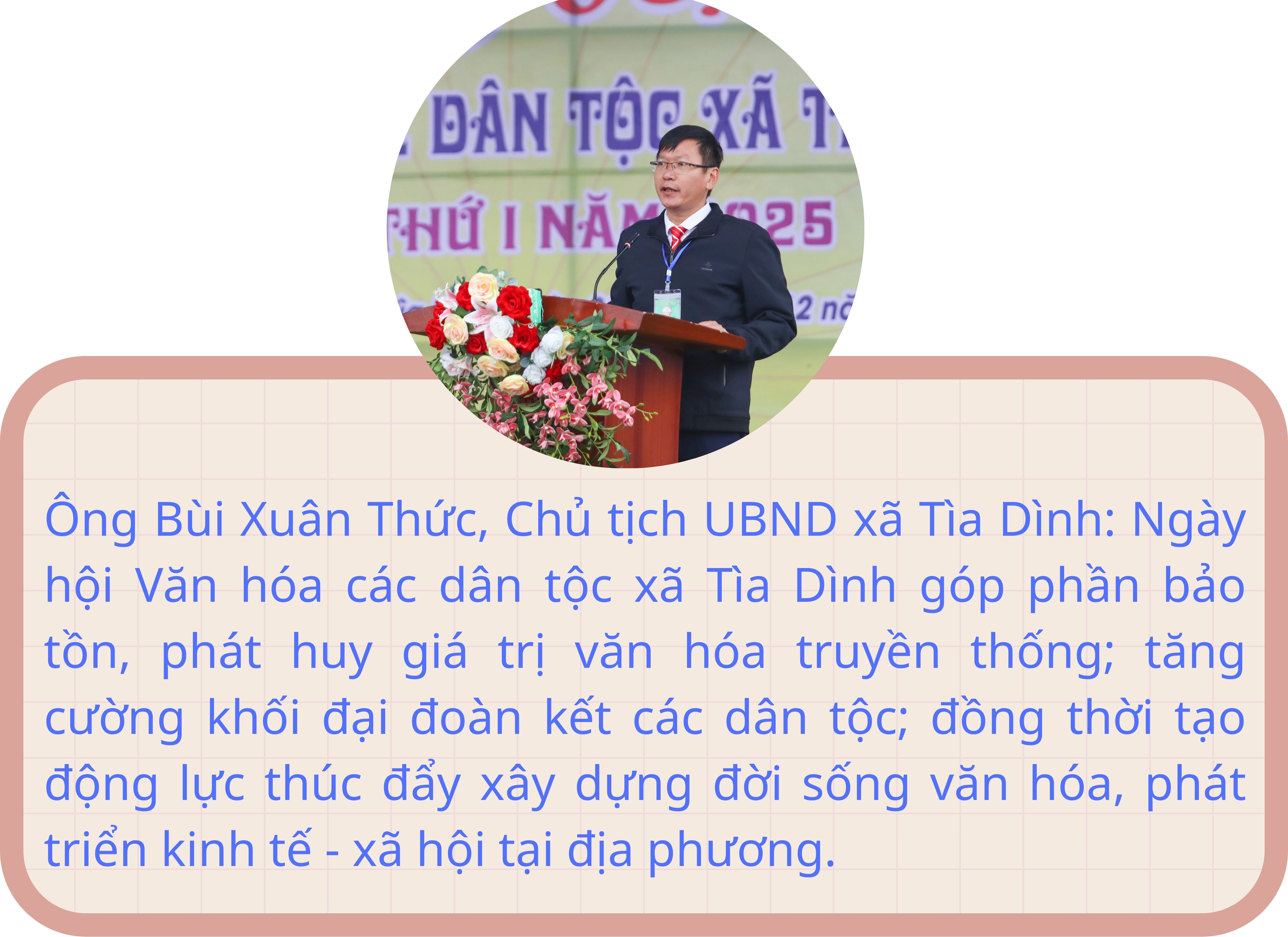 Có thể thấy, ngày hội văn hóa các dân tộc xã Tìa Dình đã tái hiện không gian sinh hoạt cộng đồng giàu bản sắc, nơi văn hóa truyền thống được trao truyền và lan tỏa tới đông đảo người dân, du khách. Tạo tiền đề cho sự phát triển kinh tế - xã hội bền vững tại địa phương.