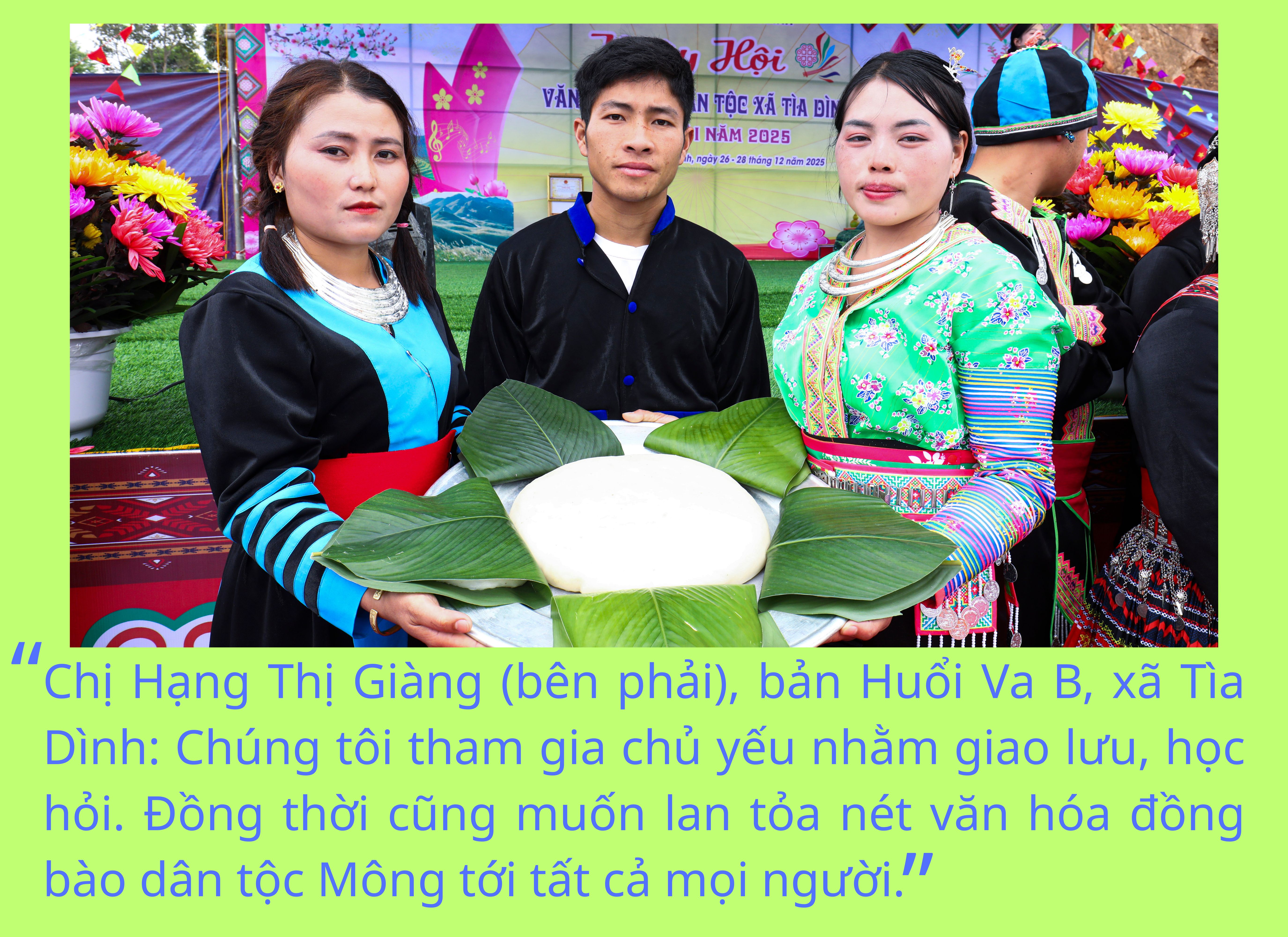 Xã Tìa Dình có 20 bản, đa số là đồng bào dân tộc Mông. Giã bánh giầy là nét văn hóa truyền thống gắn với lễ tết, hội hè của đồng bào. Hội thi giã bánh giầy đã thu hút 18 đội tới từ các bản trên địa bàn xã tham gia. Những chõ xôi trắng ngần, bốc khói thoang thoảng hương thơm lúa mới được từng nhịp chày nhanh nhẹn, khỏe khoắn của các chàng trai giã mịn, từng chiếc bánh được nhào nặn căng tròn trong tiếng nói cười, trò chuyện rộn rã, gợi lên nhịp sống quen thuộc nơi bản làng Tây Bắc.