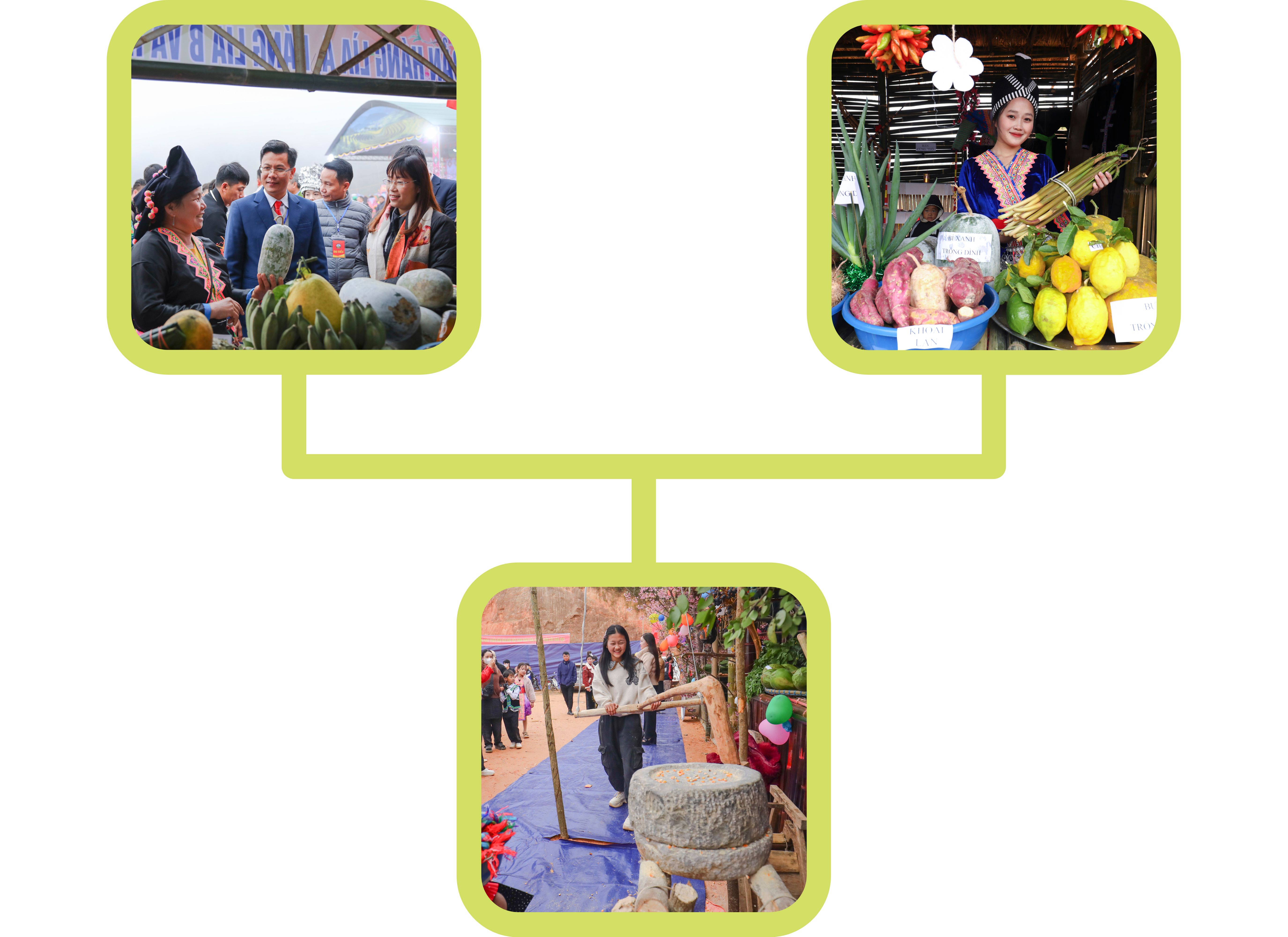 Trong không khí rộn ràng, các chị em sắm sửa, chỉnh trang chơi hội. Những chiếc váy, áo sặc sỡ dân tộc Mông, đơn giản, tinh khôi của dân tộc Thái hay hiền dịu trong trang phục dân tộc Lào được bày bán, cho thuê. Du khách được hóa thân thành cô thôn nữ, hòa mình trải nghiệm đời sống văn hóa nơi rẻo cao. Cùng với đó các sản phẩm thủ công, đặc sản địa phương được giới thiệu, quảng bá tới du khách.