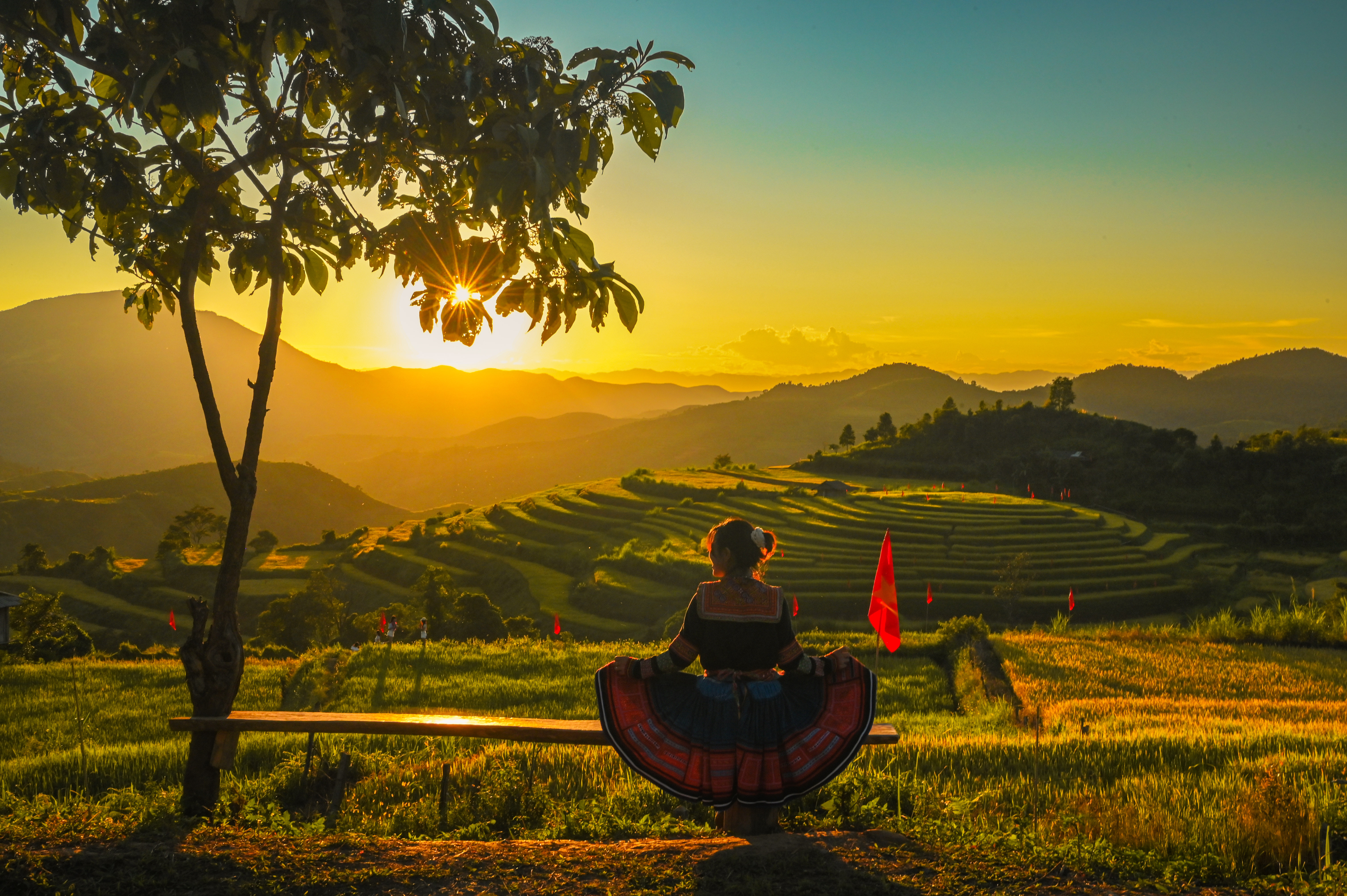 Ở Điện Biên, người ta có thể ngắm hoàng hôn ở bất cứ đâu: từ lòng chảo Mường Thanh trù phú, trên những triền ruộng bậc thang uốn lượn, hay nơi đỉnh đèo Pha Đin – “một trong tứ đại đỉnh đèo” của Tây Bắc. Mỗi nơi lại mang một sắc thái khác, nhưng đều chung một cảm xúc – bình yên, thẳm sâu và tràn đầy sức sống.
