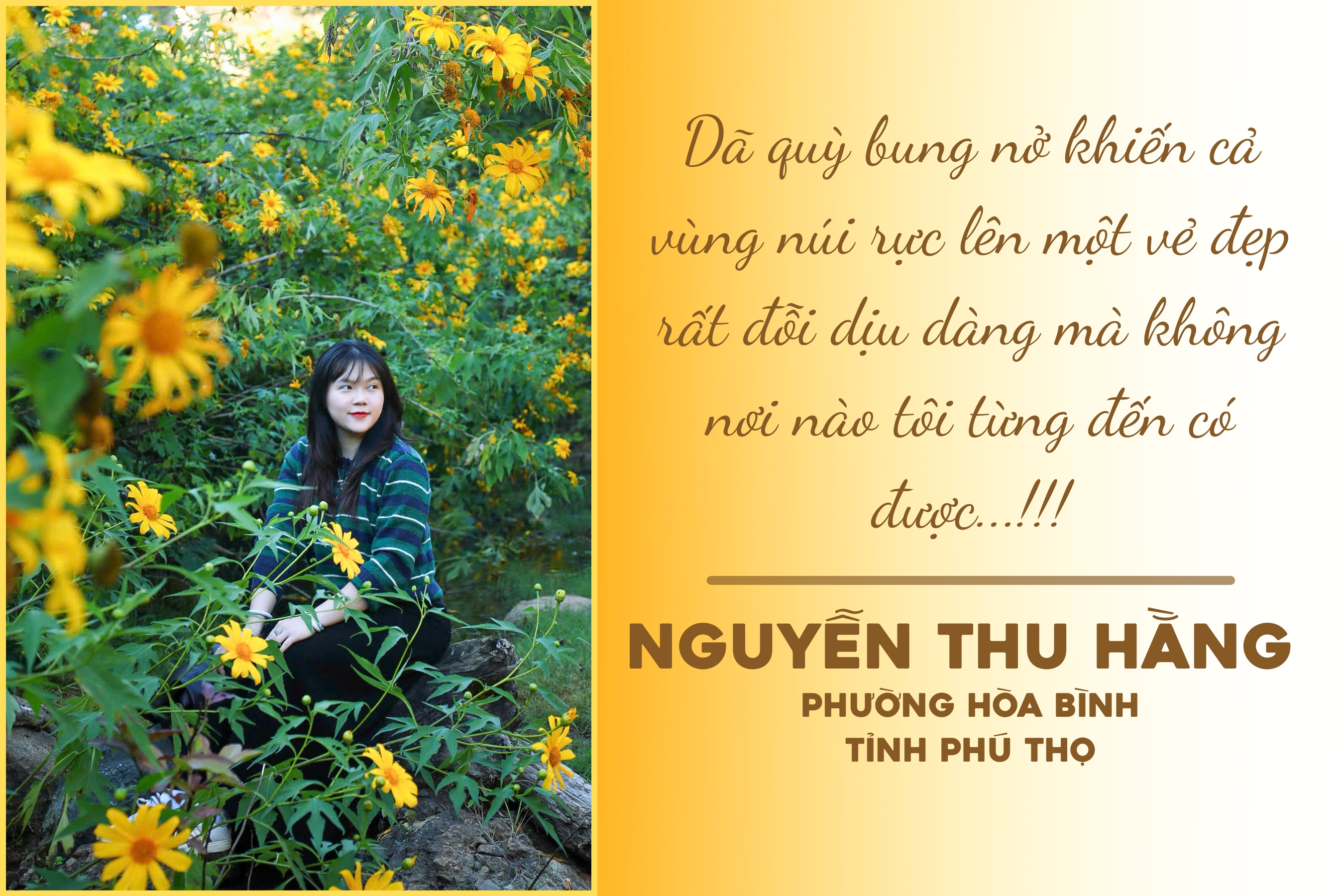 Khi bầu trời chuyển mình sang đông, sắc vàng dã quỳ lại tiếp tục thắp sáng những triền núi Điện Biên, mang đến vẻ đẹp mộc mạc mà rực rỡ, bình dị mà say đắm. Và một ngày không xa, hi vọng sắc vàng ấy sẽ được gìn giữ, phát triển thành những “miền hoa” rộng lớn – nơi du khách bốn phương tìm đến để cảm nhận trọn vẹn vẻ đẹp của Điện Biên khi mùa đông gõ cửa.