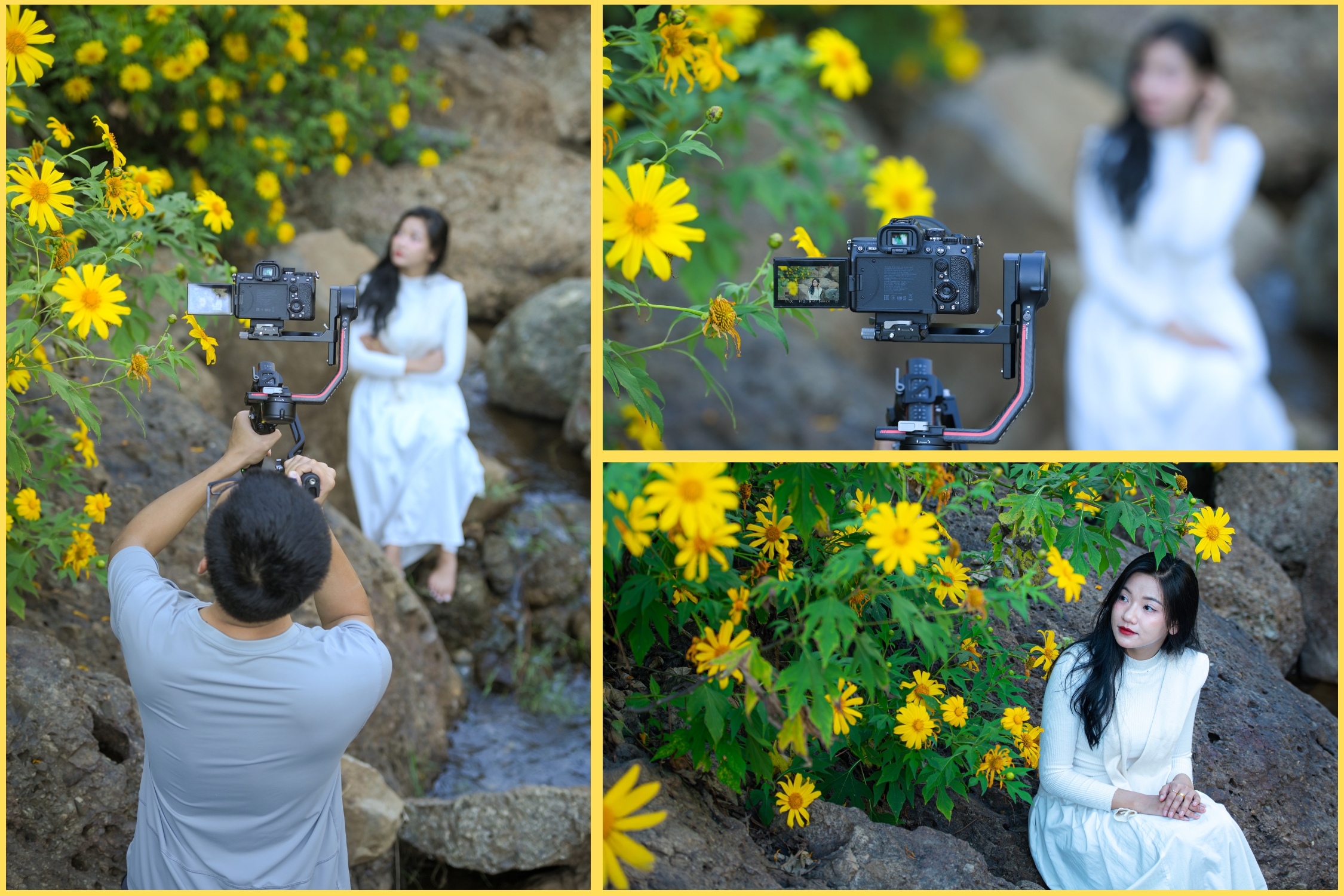Anh Quách Thế Tân, người có nhiều năm gắn bó với cảnh sắc Điện Biên, cho biết: “Dã quỳ là loại hoa đón nắng. Khi mặt trời nghiêng mình, ánh sáng xiên qua, bạn sẽ thấy cả triền dã quỳ như phát sáng. Những bức ảnh đẹp nhất tôi từng chụp đều vào những thời khắc ấy. Dã quỳ Điện Biên có màu vàng rất trong, lại mọc thành bụi lớn, nên khi chụp toàn cảnh sẽ rất nổi.”