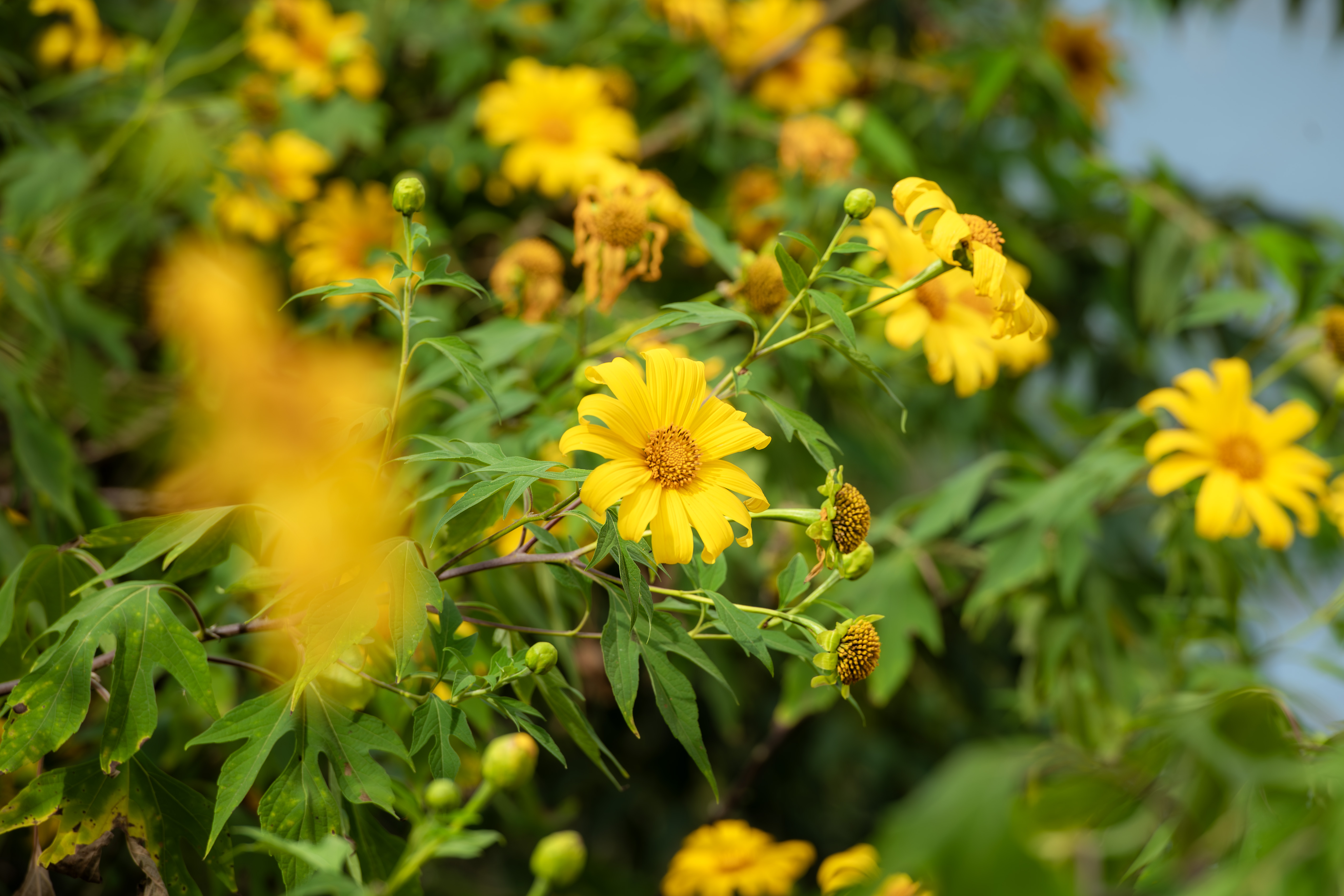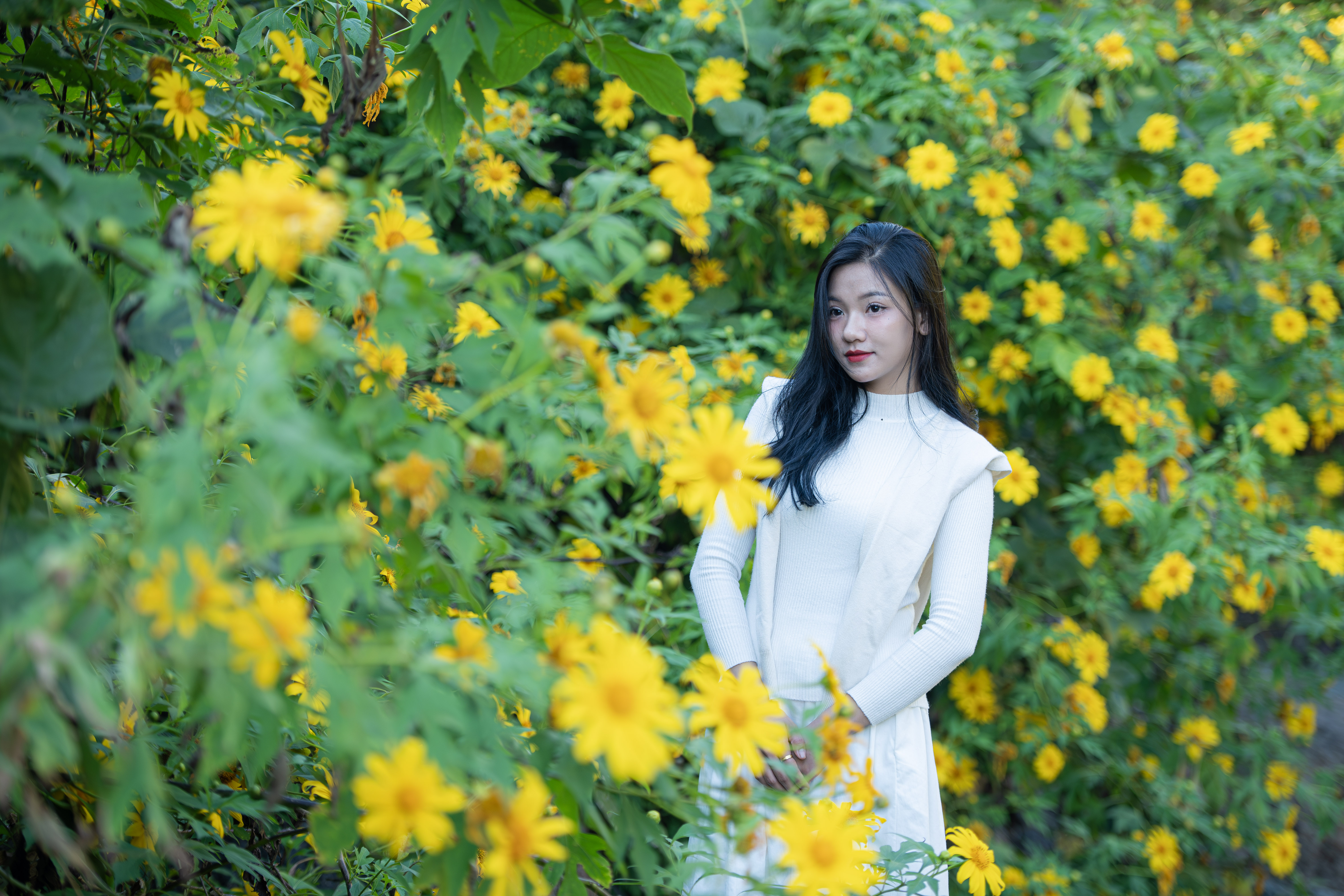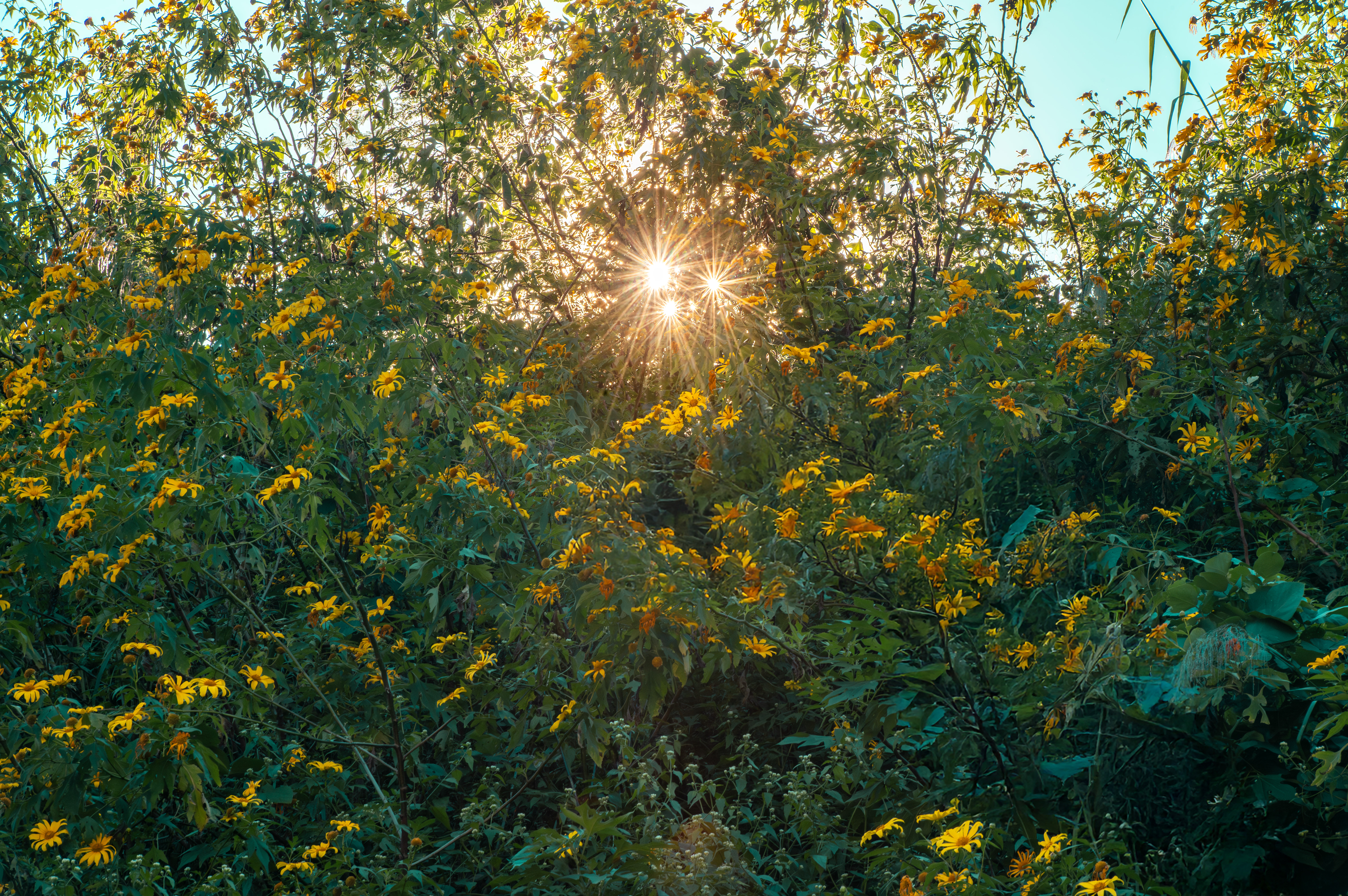 Theo kinh nghiệm của những nhiếp ảnh gia chuyên săn hoa dã quỳ, thời điểm lý tưởng nhất để “bắt được” vẻ đẹp lung linh của loài hoa này là từ 8 – 10 giờ sáng và 15–17 giờ chiều. Khi ấy, ánh nắng vừa đủ mềm, trải một lớp mỏng nhẹ lên từng cánh hoa. Ánh sáng xuyên qua lớp cánh mỏng tạo nên độ trong trẻo, bắt sáng tuyệt đẹp, khiến những bụi hoa vốn giản dị bỗng trở nên rực rỡ, huyền ảo.