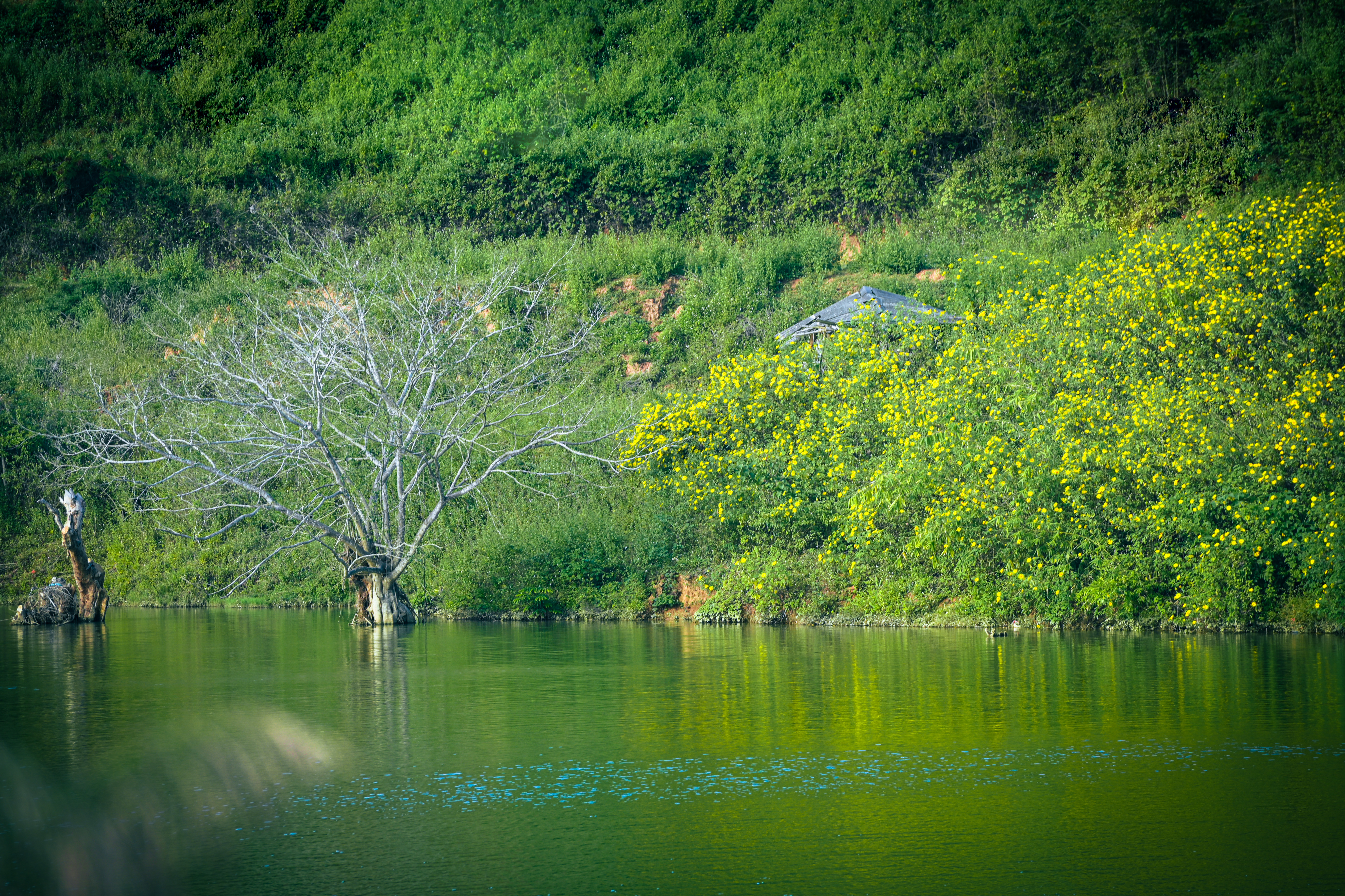 Những lời chia sẻ ấy cũng là cảm nhận chung của nhiều du khách khi đến nơi đây. Bởi ở Nậm Khẩu Hu, dã quỳ không chỉ đẹp bởi sắc vàng rực rỡ, mà còn bởi sự giao hòa đầy thi vị giữa hoa – nước – trời, khiến cảnh quan trở nên mềm mại, thơ mộng hơn bao giờ hết.