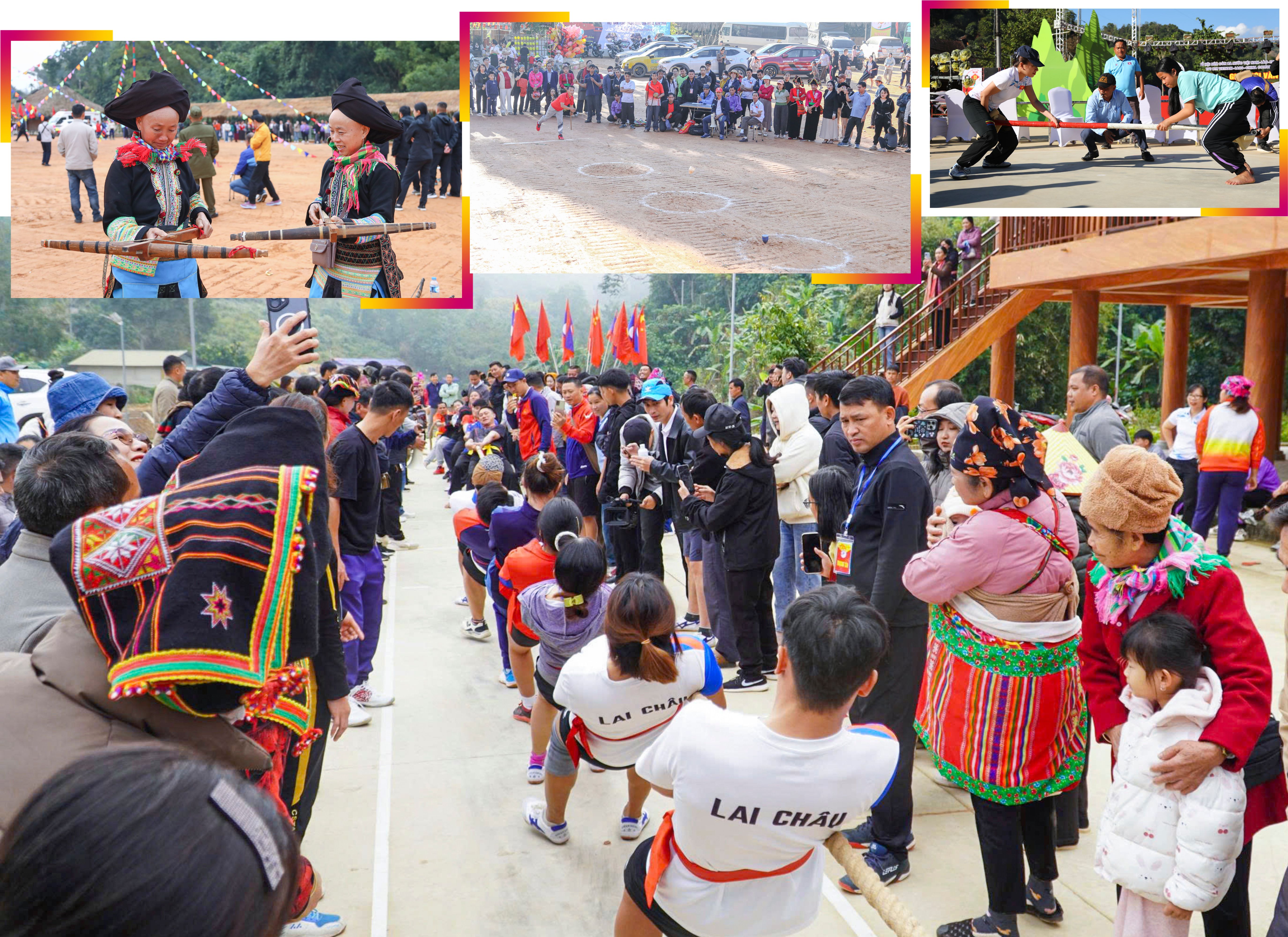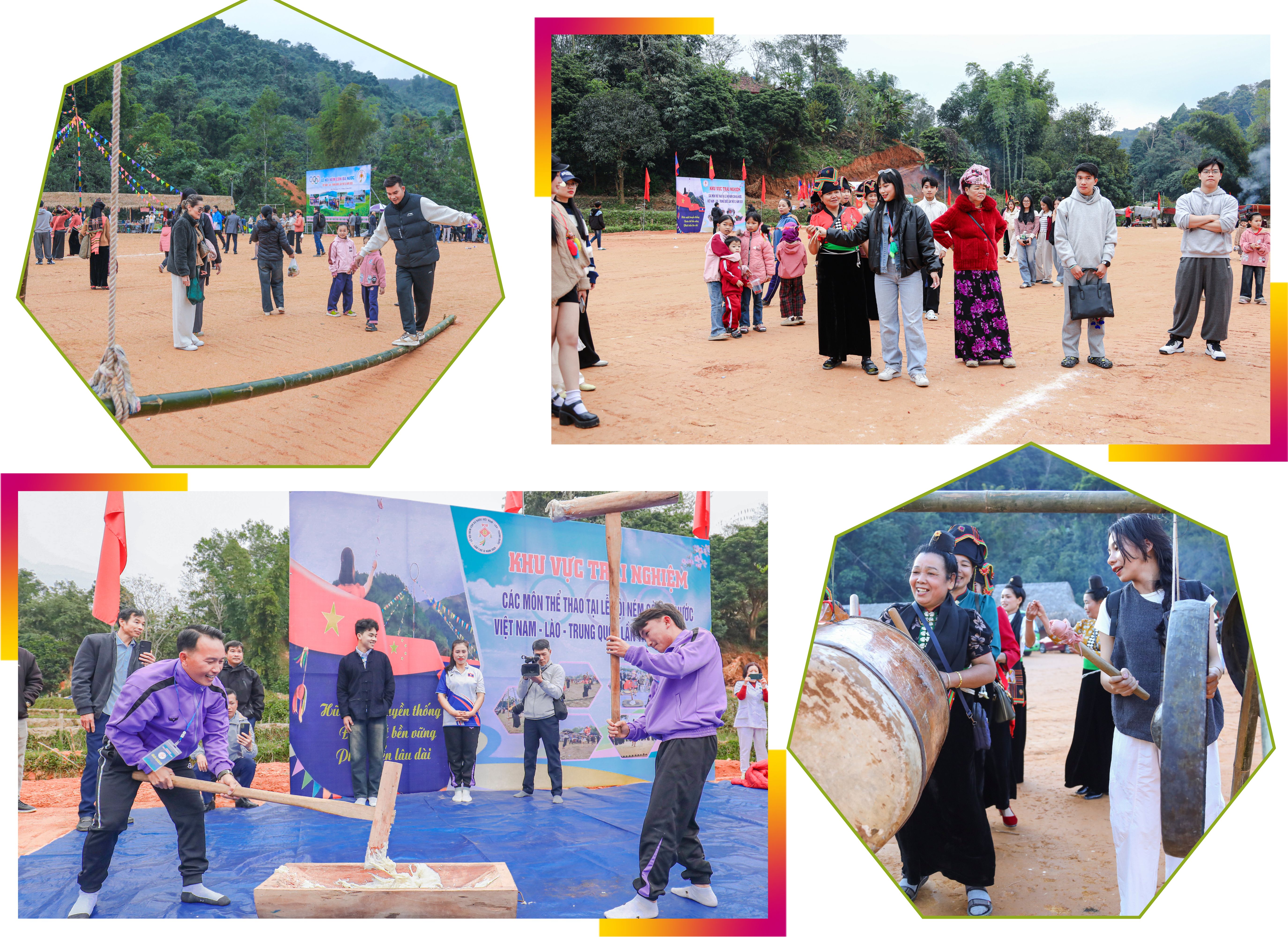 Ngay sau những giờ thi ném còn, dưới màu cờ tung bay của ba nước trên sân bản Phiêng Lơi, các VĐV tiến hành thi đấu các môn thể thao truyền thống như bắn nỏ, đánh tù lu, đẩy gậy, kéo co. Các môn thể thao thể hiện sức mạnh, kỹ thuật và sự tập trung tinh thần tập thể của các đội thi.