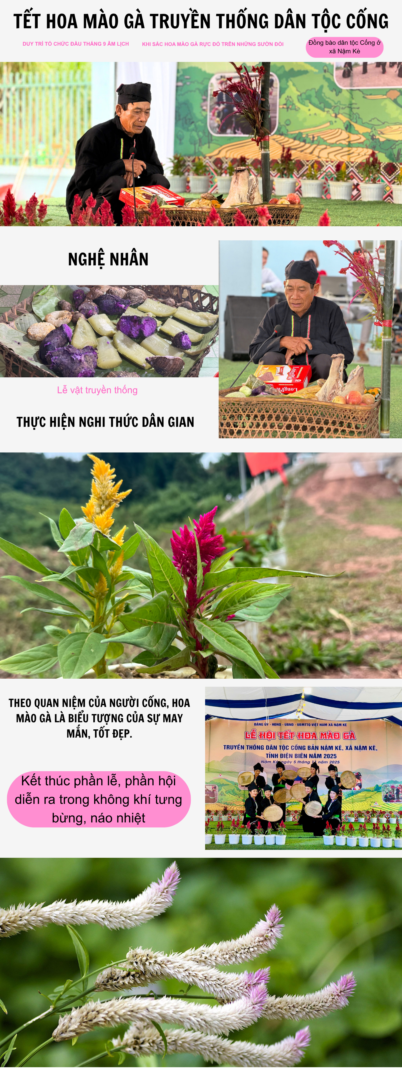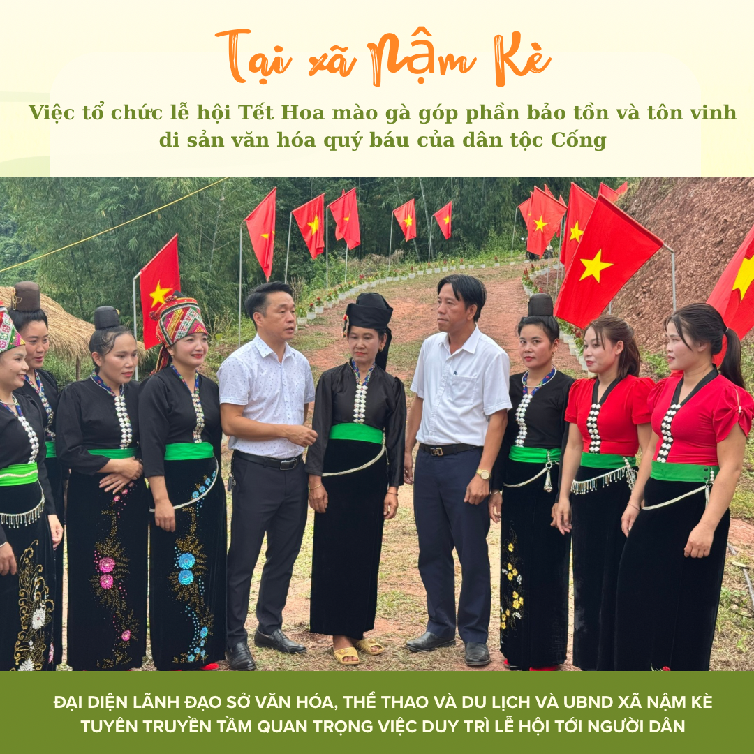 Đã thành thông lệ, vào đầu tháng 9 âm lịch, khi sắc hoa mào gà rực đỏ trên những sườn đồi là lúc đồng bào Cống ở xã Nậm Kè nô nức đón Tết Hoa mào gà hay còn gọi là Tết Hoa. Đây là dịp để bà con sum họp, vui Tết truyền thống; gìn giữ và lan tỏa những giá trị văn hóa đặc sắc, thể hiện đời sống tinh thần phong phú, tình đoàn kết của cộng đồng người Cống nơi cực Tây Tổ quốc.