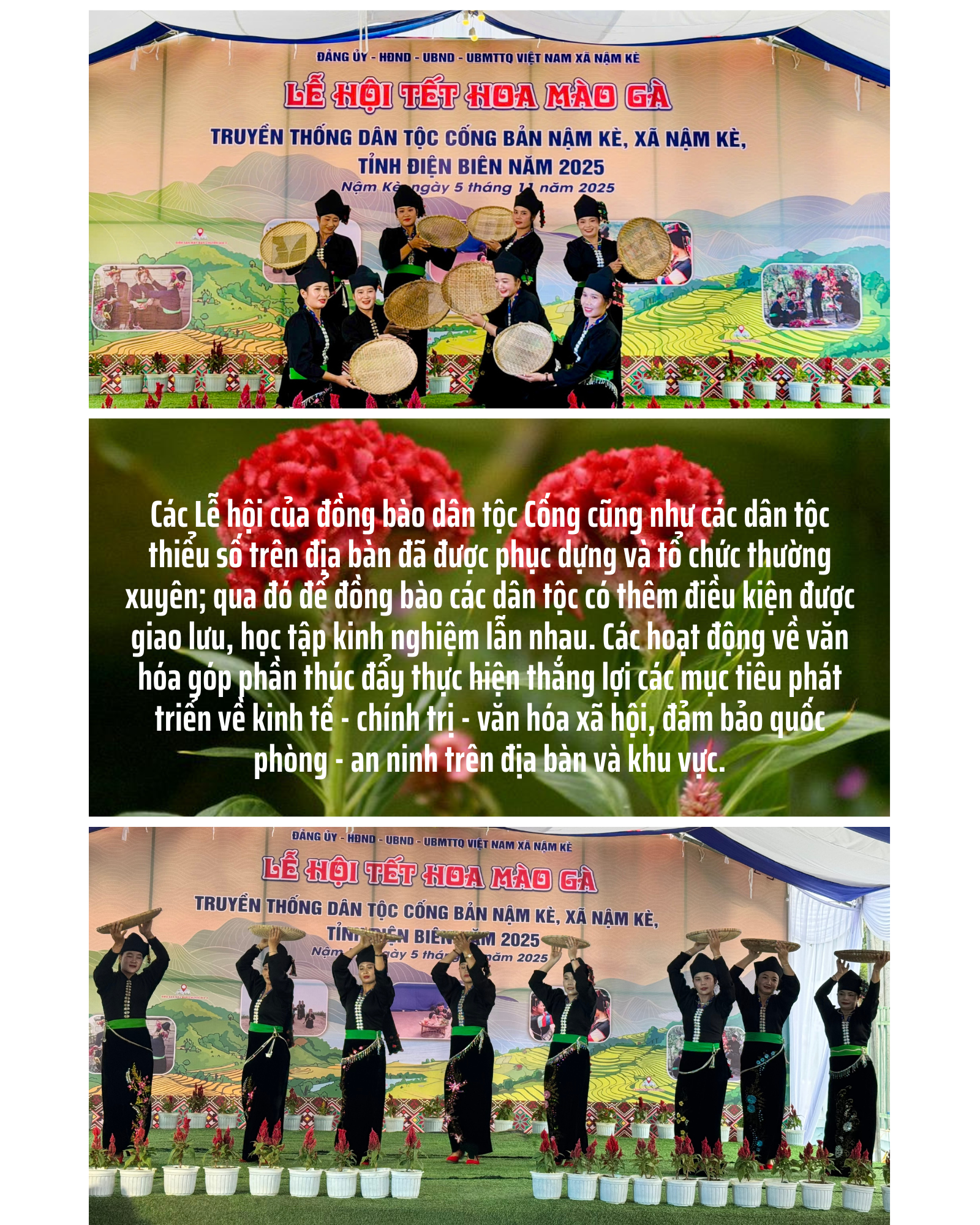 Qua việc duy trì lễ hội Tết Hoa mào gà truyền thống của đồng bào dân tộc Cống ở xã Nậm Kè, tình cảm gia đình, cộng đồng được vun đắp ngày càng bền vững, đồng thời giữ gìn, phát huy nét đẹp văn hóa đặc sắc trong hành trình xây dựng cuộc sống ấm no, bền vững nơi biên giới.