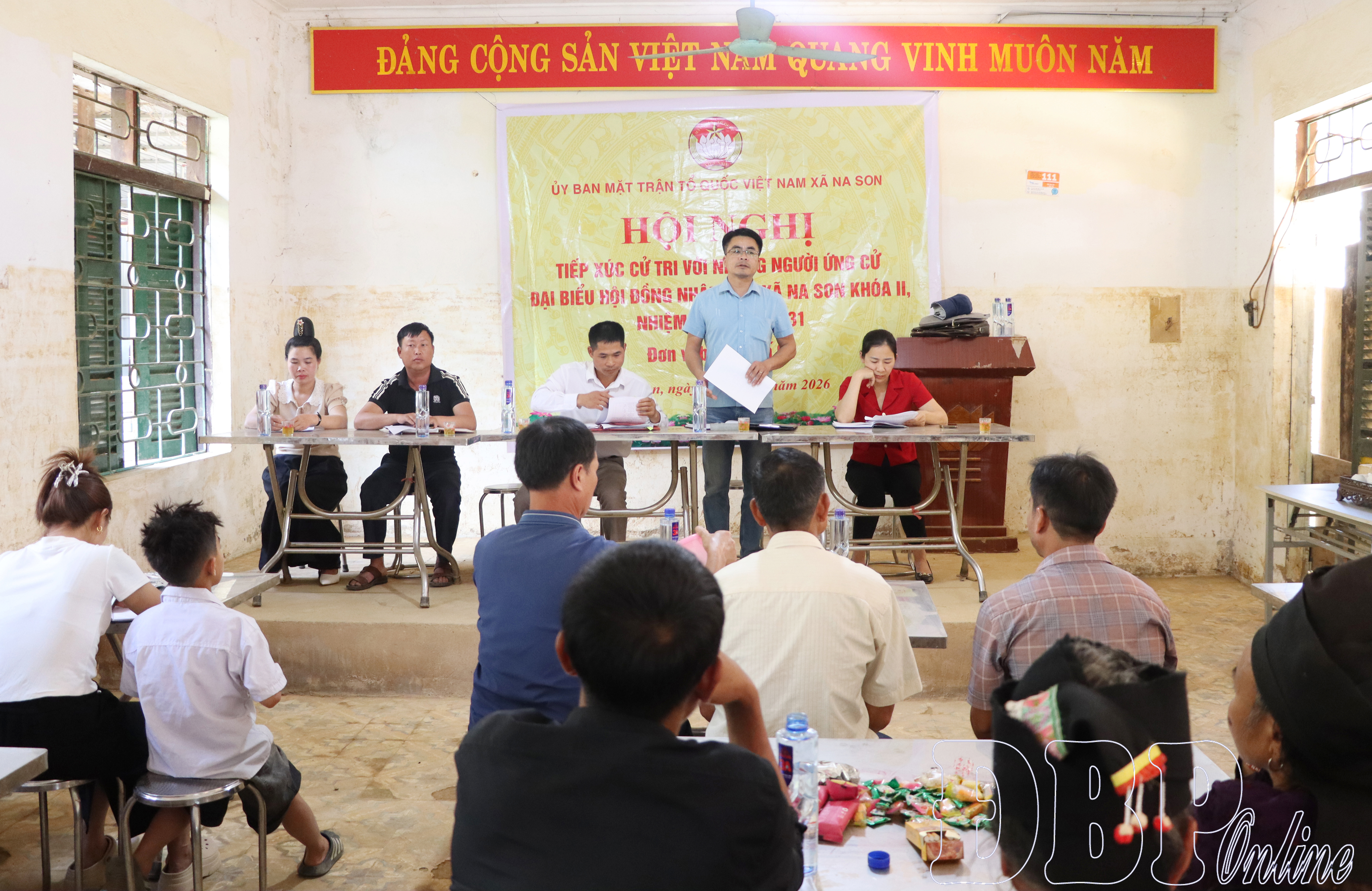 Dù là ngày nghỉ, đoàn ứng cử viên đại biểu HĐND xã Na Son nhiệm kỳ 2026 - 2031 vẫn tổ chức tiếp xúc cử tri, vận động bầu cử tại các bản Suối Lư 1, 2 và 3 bảo đảm tiến độ, tạo điều kiện để cử tri trực tiếp lắng nghe và đóng góp ý kiến.