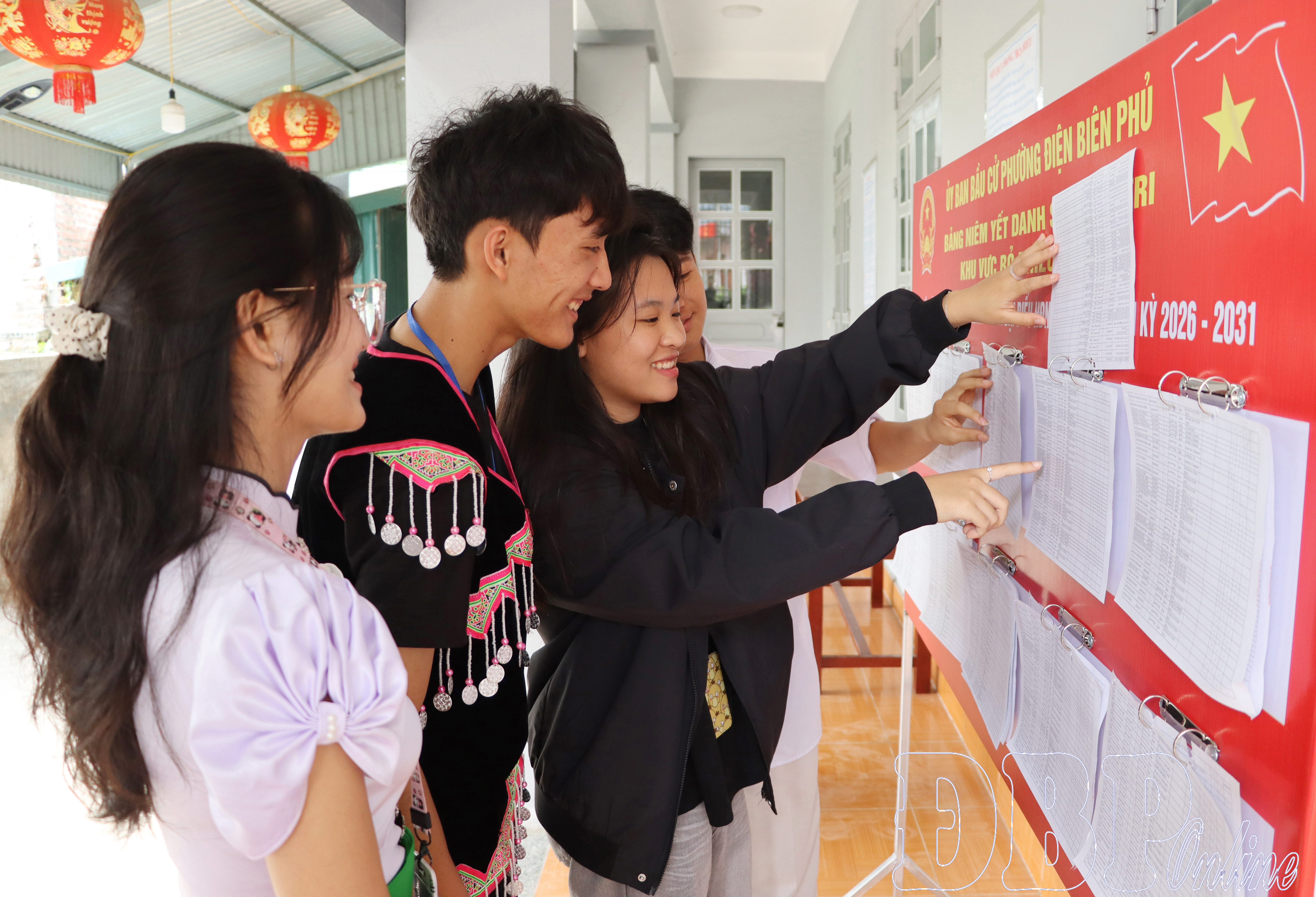 Một buổi sáng đầu tháng Ba, tại nhà văn hóa tổ dân phố 4, phường Điện Biên Phủ, bảng niêm yết danh sách cử tri thu hút khá đông người dân đến xem. Trong số ấy có em Lê Phương Thúy, học sinh Trường Phổ thông Dân tộc nội trú THPT tỉnh Điện Biên, tròn 18 tuổi cách đây ít tháng. Đứng trước bảng danh sách, Thúy chăm chú dò từng dòng thông tin. Khi nhìn thấy tên mình trong danh sách cử tri, em khẽ mỉm cười, đôi mắt ánh lên sự háo hức.