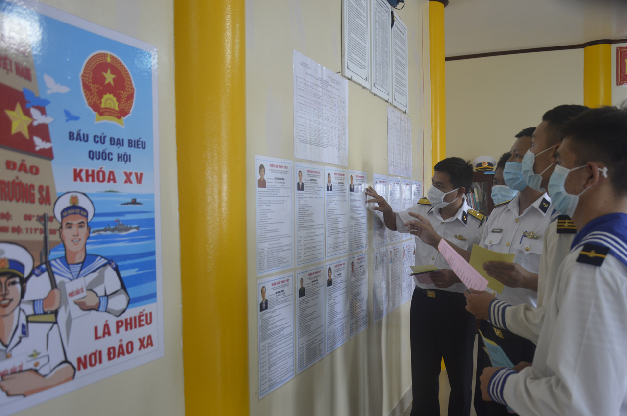 Với tinh thần trách nhiệm cao nhất trước Đảng, Nhà nước và Nhân dân, Bộ Tư lệnh Vùng 2 Hải quân đã thành lập Tổ bầu cử sớm trên biển; tổ chức cho 2 tàu Trường Sa 04 và Trường Sa 19 (Lữ đoàn 125) thực hiện hải trình gần 2.000 hải lý, tiến hành bầu cử tại bến và trên 15 nhà giàn DK1, 10 tàu đang làm nhiệm vụ trên thềm lục địa phía Nam của Tổ quốc, với hàng nghìn cử tri, bảo đảm dân chủ, đúng luật, chặt chẽ, an toàn tuyệt đối.