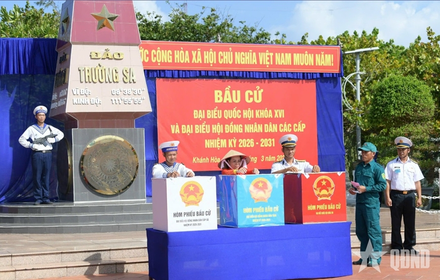 Ngày 15/3, đảo Trường Sa thuộc đặc khu Trường Sa, tỉnh Khánh Hòa tổ chức bỏ phiếu bầu cử đại biểu Quốc hội khóa XVI và đại biểu HĐND các cấp nhiệm kỳ 2026-2031. Đây là lần thứ hai, đảo Trường Sa tiến hành bầu cử cùng ngày với cả nước. Trong không khí vui tươi, phấn khởi, từ rất sớm, cán bộ, chiến sĩ và nhân dân đang sinh sống, công tác trên đảo đã có mặt đông đủ tại khu vực cột mốc chủ quyền-nơi đặt hòm phiếu.