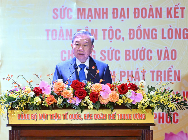 Phát biểu chỉ đạo đại hội, Tổng Bí thư Tô Lâm khẳng định, Mặt trận là nhân dân, là nơi quy tụ rộng rãi nhất quần chúng-người lao động, nông dân, phụ nữ, phụ lão, thanh niên, thiếu niên, nhi đồng, cựu chiến binh, đồng bào các dân tộc, các tôn giáo, trí thức, doanh nhân, văn nghệ sĩ, người Việt Nam ở nước ngoài. Sức mạnh của Mặt trận chính là sức mạnh của lòng dân. Truyền thống của Mặt trận là đoàn kết.