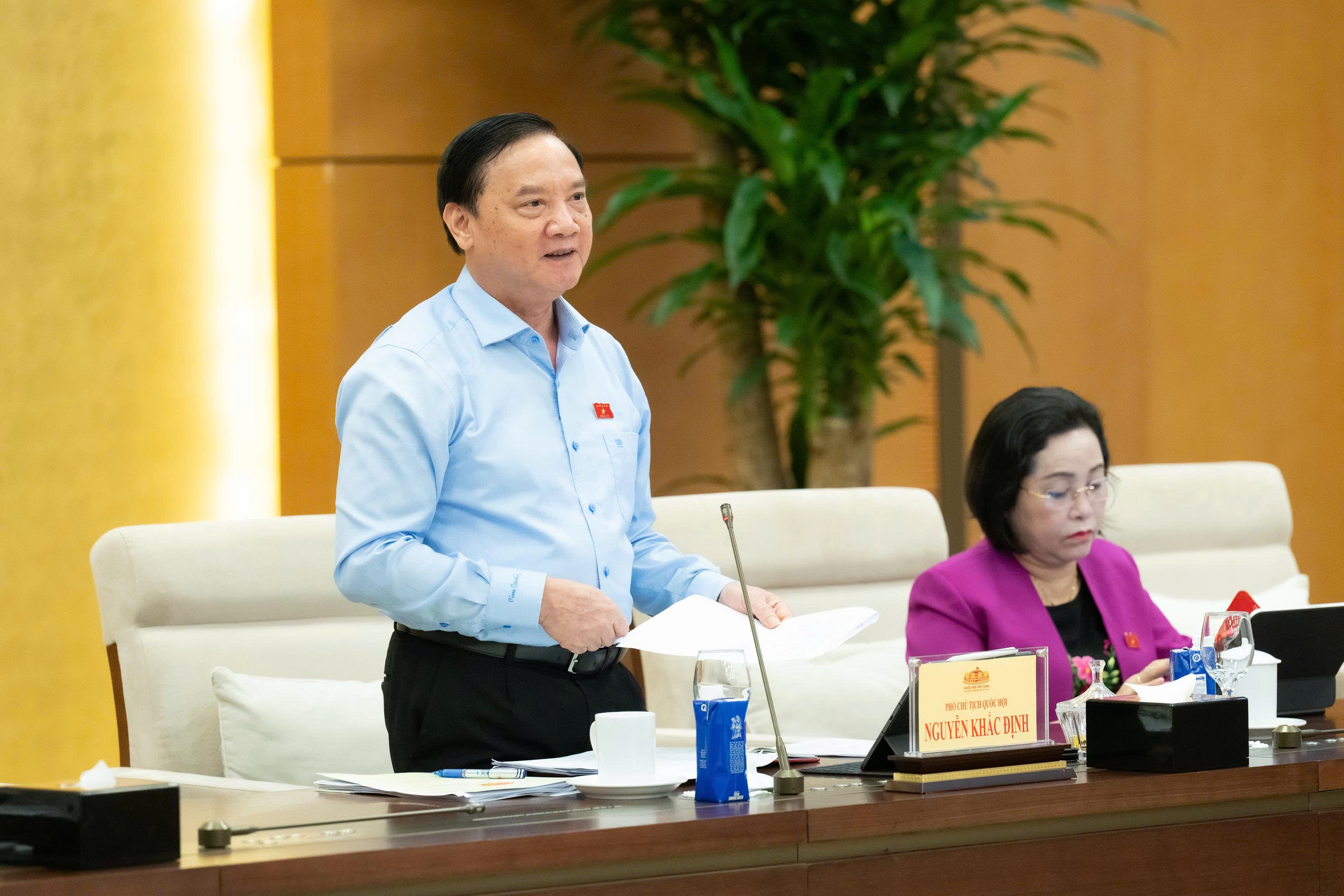 Phát biểu kết luận nội dung thảo luận, Phó Chủ tịch Quốc hội Nguyễn Khắc Định cho biết, Ủy ban Thường vụ Quốc hội đánh giá cao cơ quan chủ trì soạn thảo, cơ quan chủ trì thẩm tra đã khẩn trương, trách nhiệm, phối hợp chặt chẽ chuẩn bị hồ sơ dự thảo Nghị quyết đầy đủ đúng quy định, bảo đảm chất lượng và đủ điều kiện trình Ủy ban Thường vụ Quốc hội xem xét để trình Quốc hội thông qua theo quy trình rút gọn tại kỳ họp thứ Nhất, Quốc hội khóa XVI. Để tiếp tục hoàn thiện hồ sơ trình Quốc hội, Ủy ban Thường vụ Quốc hội đề nghị cơ quan chủ trì soạn thảo cùng cơ quan chủ trì trẩm tra tiếp tục rà soát, báo cáo Quốc hội về các vấn đề: đối tượng áp dụng của Nghị quyết, tiêu chuẩn và nguồn luật sư công, nhiệm vụ của luật sư công, chế độ chính sách và các điều kiện bảo đảm khác đối với luật sư công, đánh giá nguồn lực để thực hiện, gắn luật sư công với vị trí việc làm, bổ sung quy định chuyển tiếp đối với các vụ việc luật sư công đang thực hiện mà đến thời điểm nghị quyết hết hiệu lực thi hành. Trên cơ sở ý kiến của Ủy ban Thường vụ Quốc hội, ý kiến các đại biểu tham gia tại phiên họp hôm nay và ý kiến thẩm tra của cơ quan thẩm tra, đề nghị Bộ Tư pháp khẩn trương tham mưu giúp Chính phủ hoàn thiện hồ sơ dự thảo Nghị quyết và gửi đến các đại biểu Quốc hội trước khi bắt đầu đợt 2 của Kỳ họp thứ Nhất.