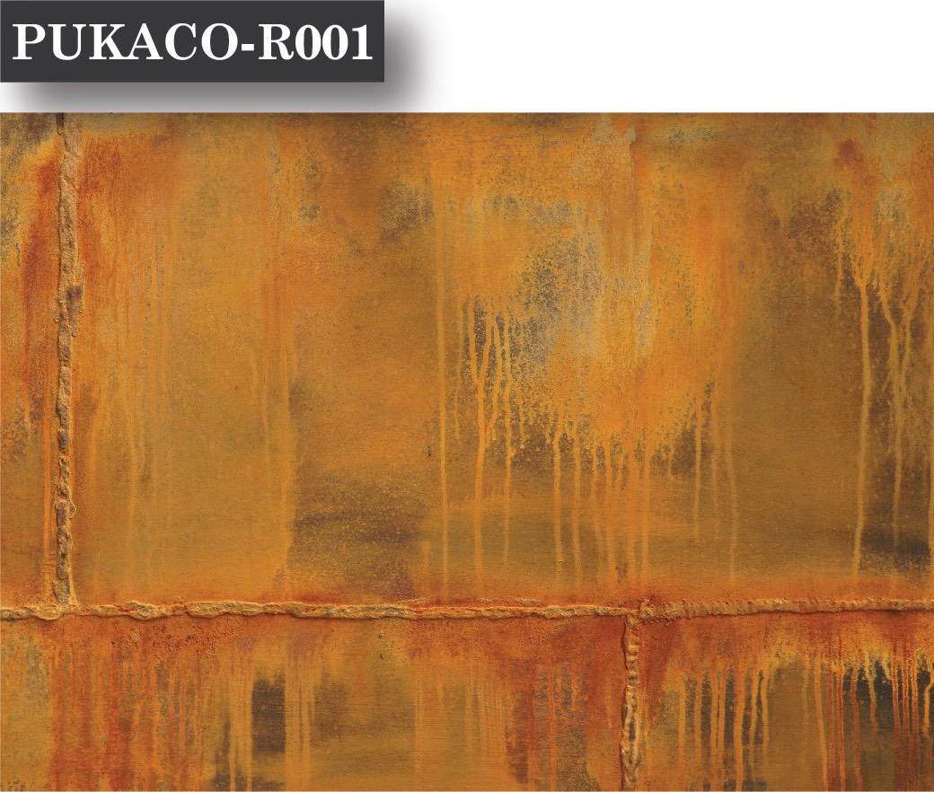 - PUKACO - R001: “Bản hòa ca” rực rỡ của các tone cam, nâu và vàng đậm, tái hiện sống động những mảng rỉ sét loang lổ đầy tính nghệ thuật.