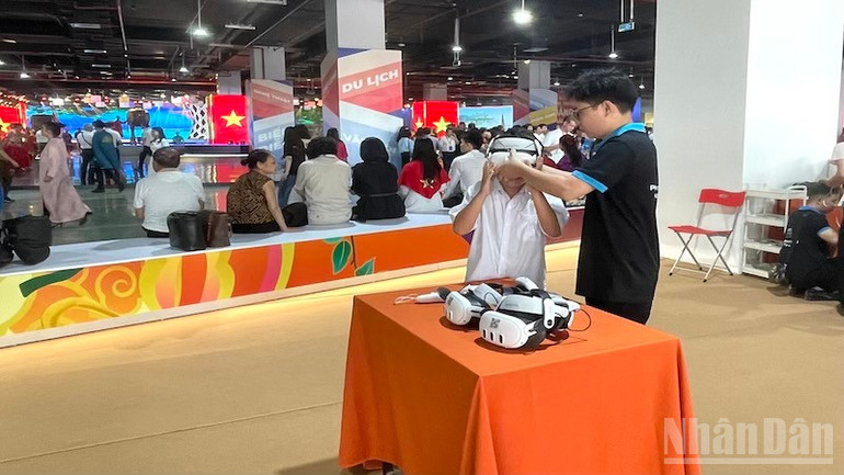 Ngoài ra, khu vực "check-in" video 360 độ thu hút đông đảo bạn trẻ yêu thích sáng tạo nội dung. Với góc quay xoay toàn cảnh, chỉ trong vài giây, mỗi người đã có ngay một đoạn clip “sống ảo” để đăng tải trên Facebook, TikTok hay Instagram.