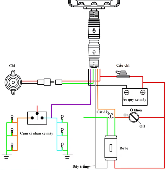 Các mẫu định vị dành cho xe gắn máy phổ biến hiện hành thường có 4 dây chính: