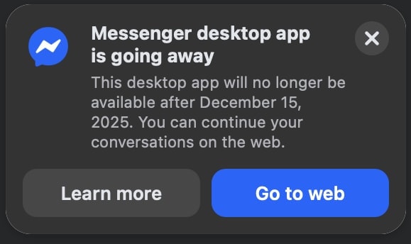 Theo quan sát, ứng dụng Facebook dành trên App Store dành cho máy tính Mac và cửa hàng ứng dụng Windows đều đã biến mất. Người dùng mở ứng dụng Facebook Messenger trên máy tính sẽ nhận được thông báo "đóng cửa" và liên kết chuyển tới dịch vụ trên web.