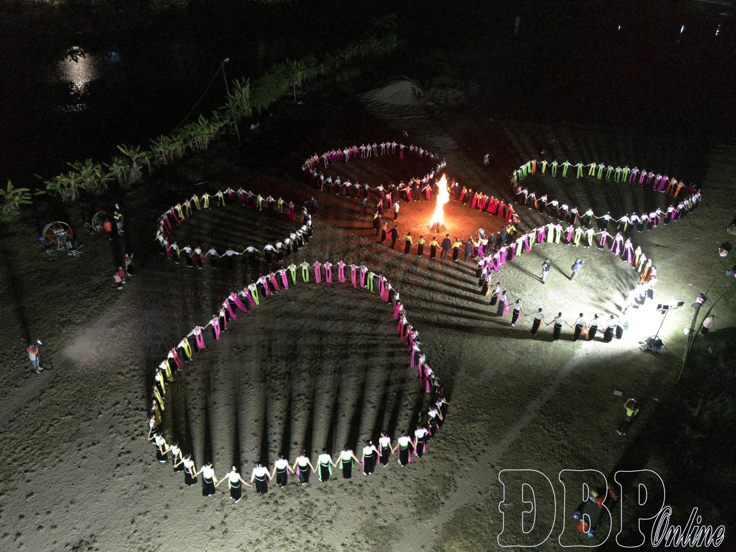 Bên cạnh màn đồng diễn chính, tại khu vực bãi đáp dù lượn bản Mo, một vòng xòe nhỏ với quy mô khoảng 300 người được tổ chức bên ánh lửa bập bùng. Ngọn lửa hồng soi sáng những gương mặt rạng ngời, làm nổi bật nét đẹp mộc mạc của văn hóa cộng đồng. Tiếng trống, tiếng chiêng hòa cùng tiếng cười nói tạo nên không gian ấm áp trong chiều đầu năm.