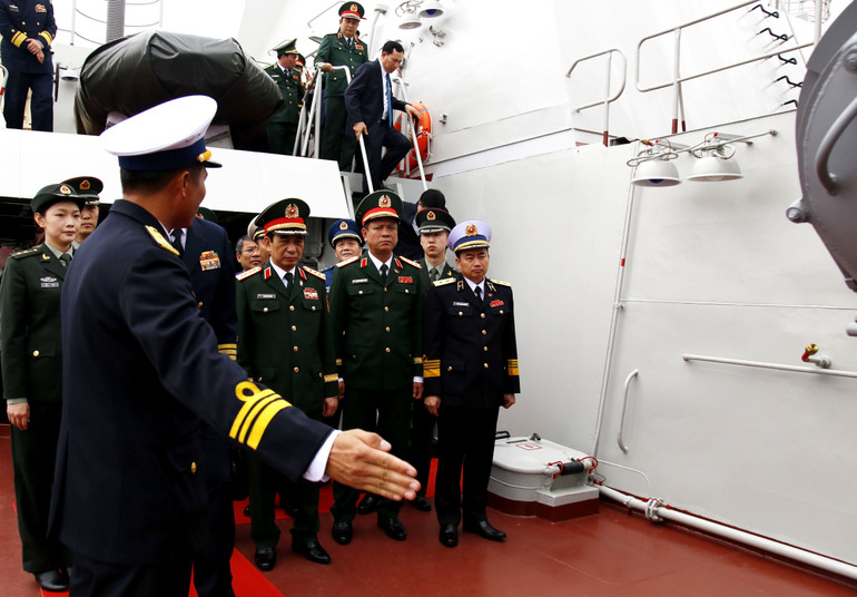 Ngay sau khi đến cảng Phòng Thành, Đại tướng Phan Văn Giang, Ủy viên Bộ Chính trị, Phó Bí thư Quân ủy Trung ương, Bộ trưởng Quốc phòng Việt Nam và Thượng tướng Đổng Quân, Bộ trưởng Quốc phòng Trung Quốc đã tham quan khu trưng bày hình ảnh về các chuyến tuần tra liên hợp trước đây giữa Hải quân hai nước; tham quan Tàu 568 của Hải quân Trung Quốc, Tàu 015 của Hải quân Việt Nam và thăm hỏi, động viên chỉ huy, sĩ quan, thủy thủ hai bên.