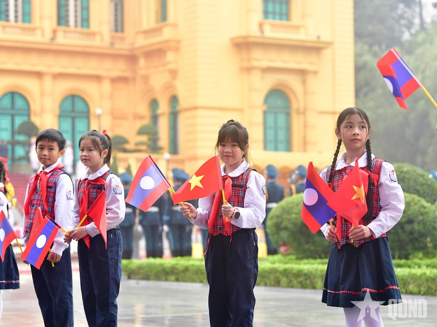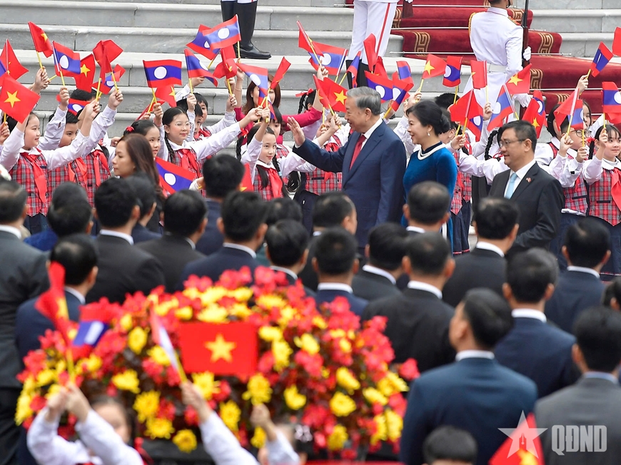 Tổng Bí thư Tô Lâm và phu nhân cùng các cháu thiếu nhi thủ đô Hà Nội tại lễ đón. Ảnh: TRỌNG HẢIQuang cảnh lễ đón. Ảnh: TRỌNG HẢITổng Bí thư Tô Lâm và Tổng Bí thư, Chủ tịch nước Lào Thongloun Sisoulith duyệt Đội danh dự Quân đội nhân dân Việt Nam. Ảnh: TRỌNG HẢITổng Bí thư Tô Lâm và Tổng Bí thư, Chủ tịch nước Lào Thongloun Sisoulith. Ảnh: TRỌNG HẢICác cháu thiếu nhi thủ đô Hà Nội tại lễ đón. Ảnh: TRỌNG HẢI