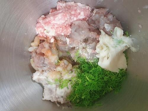 Thịt cá sau khi xay được trộn đều với gia vị truyền thống: Nước mắm nhĩ, tiêu, tỏi băm, hành lá, thì là cắt nhuyễn và một chút đường để cân bằng vị. Khối hỗn hợp phải được quết thật kỹ bằng tay hoặc máy quết để đảm bảo độ dẻo và kết dính tốt. Đây là bí quyết giúp chả cá không bị bở khi chiên và giữ được độ dai tự nhiên.