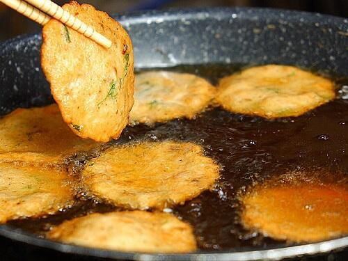 được chiên vàng ruộm trên chảo dầu, tỏa mùi thơm ngây ngất. Điểm đặc trưng của