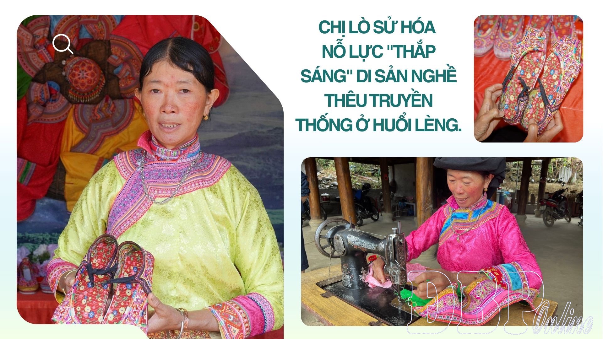 Hơn 20 năm gắn bó với cây kim, sợi chỉ, chị Hóa đã tự tay làm ra hàng trăm đôi giày. Có thời điểm, sản phẩm làm ra khó tiêu thụ, thu nhập bấp bênh, nhiều người trong bản dần bỏ nghề thêu giày nhưng chị Hóa vẫn kiên trì theo đuổi. Chị vừa làm vừa tìm cách cải tiến mẫu mã, giữ gìn từng đường thêu, từng họa tiết truyền thống. Quyết tâm giữ nghề, chị Hóa mạnh dạn tìm hướng đi mới khi nhận ra giá trị văn hóa truyền thống hoàn toàn có thể gắn với phát triển du lịch. Dù điều kiện kinh tế khó khăn, chị quyết định vay 100 triệu đồng để xây dựng homestay Sần Sú Tề ngay tại nhà. Homestay vừa là nơi lưu trú vừa là không gian để chị trưng bày, giới thiệu những đôi giày thêu truyền thống của dân tộc Xạ Phang. Du khách đến đây có thể trực tiếp quan sát từng công đoạn làm giày, tìm hiểu về văn hóa, đời sống của người dân bản địa. Nhờ sự kết hợp này, sản phẩm thủ công trở thành trải nghiệm văn hóa độc đáo với mỗi du khách khi đến Huổi Lèng.