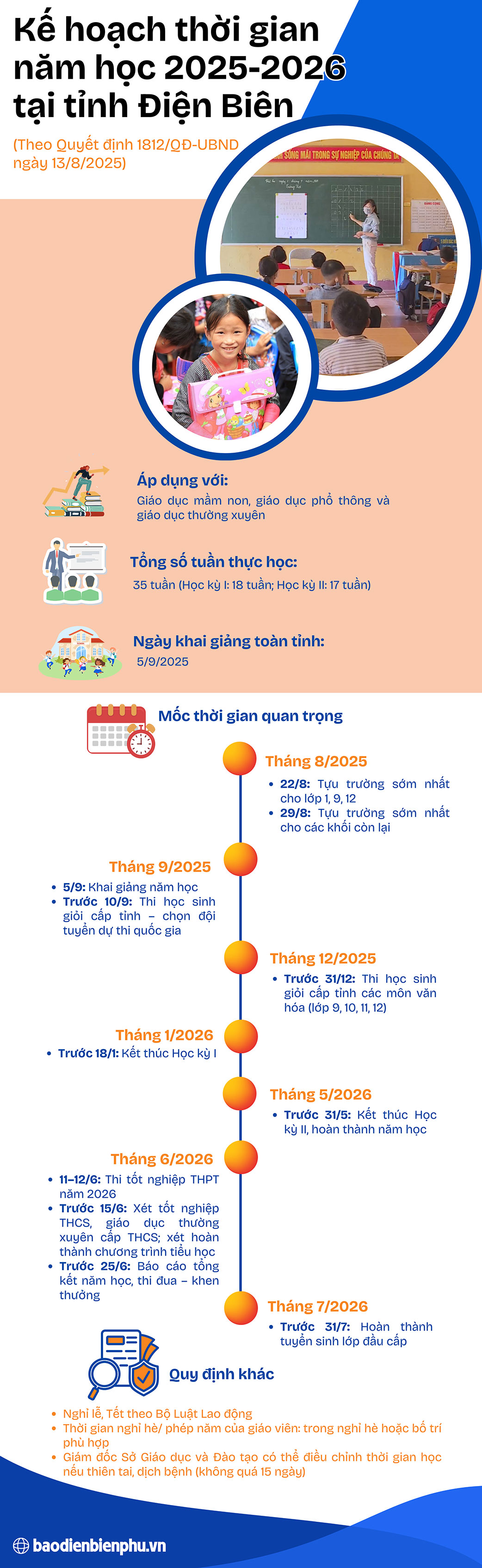 (Nguồn: Quyết định số 1812/QĐ-UBND về kế hoạch thời gian năm học 2025-2026 đối với giáo dục mầm non, giáo dục phổ thông và giáo dục thường xuyên trên địa bàn tỉnh Điện Biên)