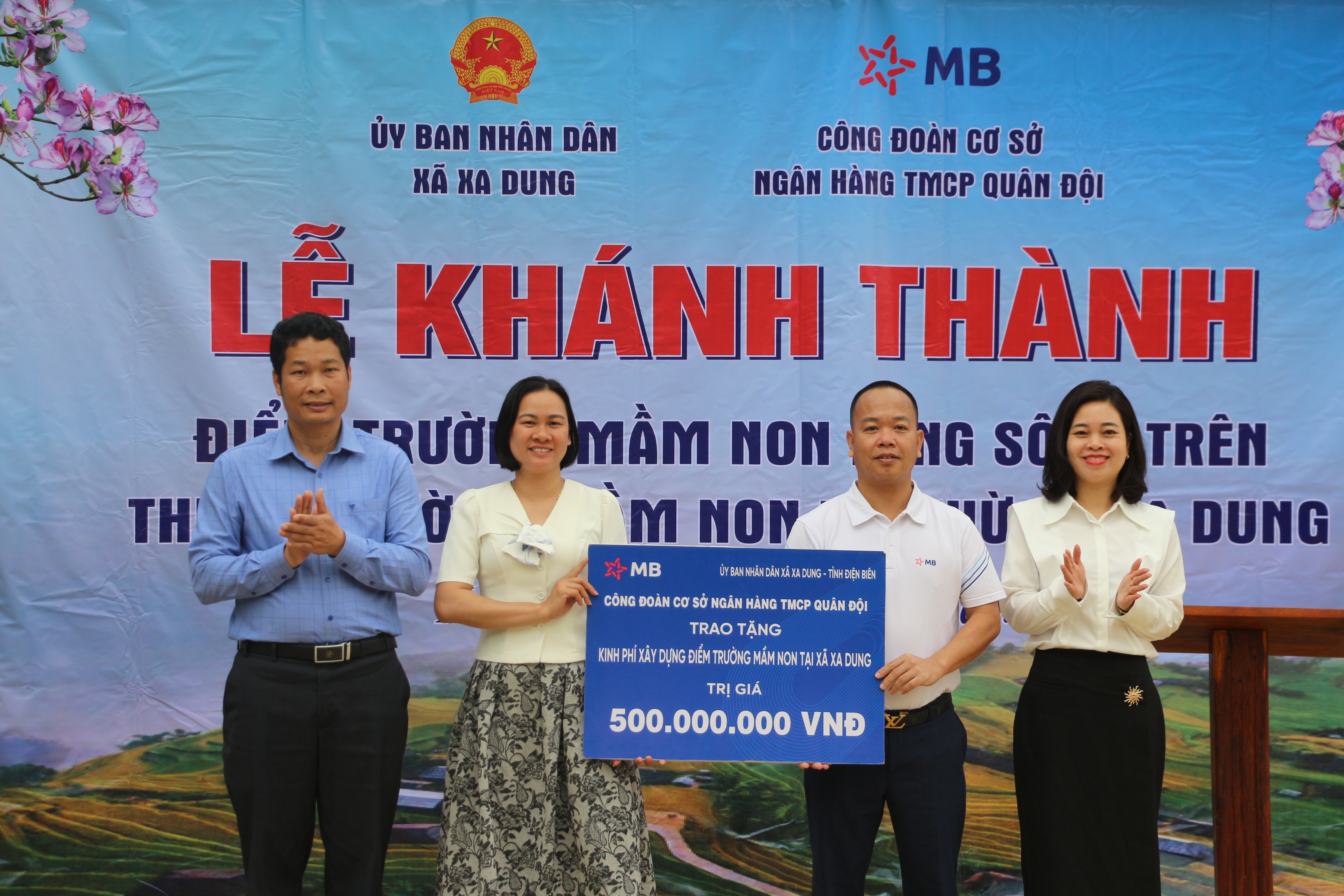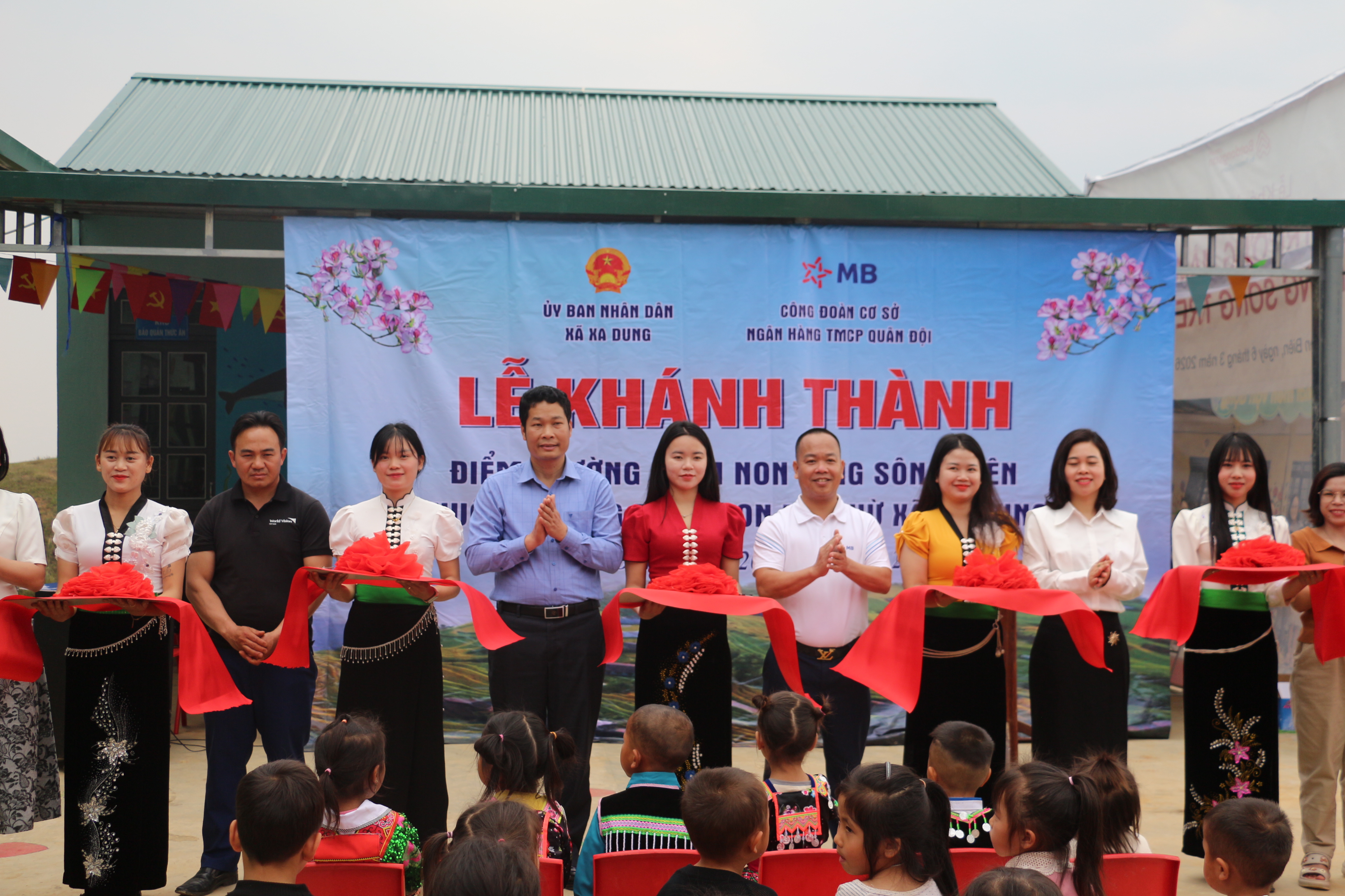 ĐBP - Ngày 20/3, Ngân hàng TMCP Quân đội Chi nhánh Điện Biên (MB Điện Biên) phối hợp với UBND xã Xa Dung tổ chức khánh thành Điểm trường Mầm non Háng Sông Trên (thuộc Trường Mầm non Phì Nhừ). Đây là công trình giúp trẻ em trên địa bàn ổn định học tập sau thiên tai.