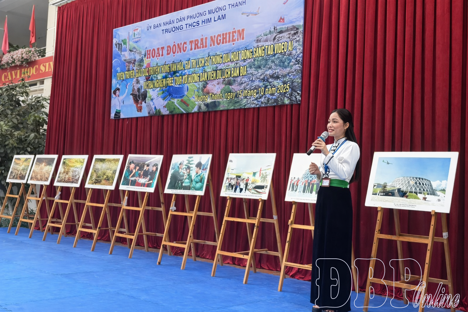 Tại Trường THCS Him Lam (phường Mường Thanh), việc ứng dụng công nghệ thông tin và chuyển đổi số trong giảng dạy lịch sử đang mang lại những hiệu quả rõ rệt. Nhà trường đã triển khai nhiều chương trình trải nghiệm gắn với chuyển đổi số tạo nên một cách tiếp cận hoàn toàn mới mẻ cho học sinh. Thay vì chỉ tiếp nhận kiến thức một chiều, học sinh được trực tiếp tham gia vào quá trình sáng tạo nội dung, trở thành những “hướng dẫn viên nhí”, tự kể lại câu chuyện lịch sử bằng góc nhìn của mình.