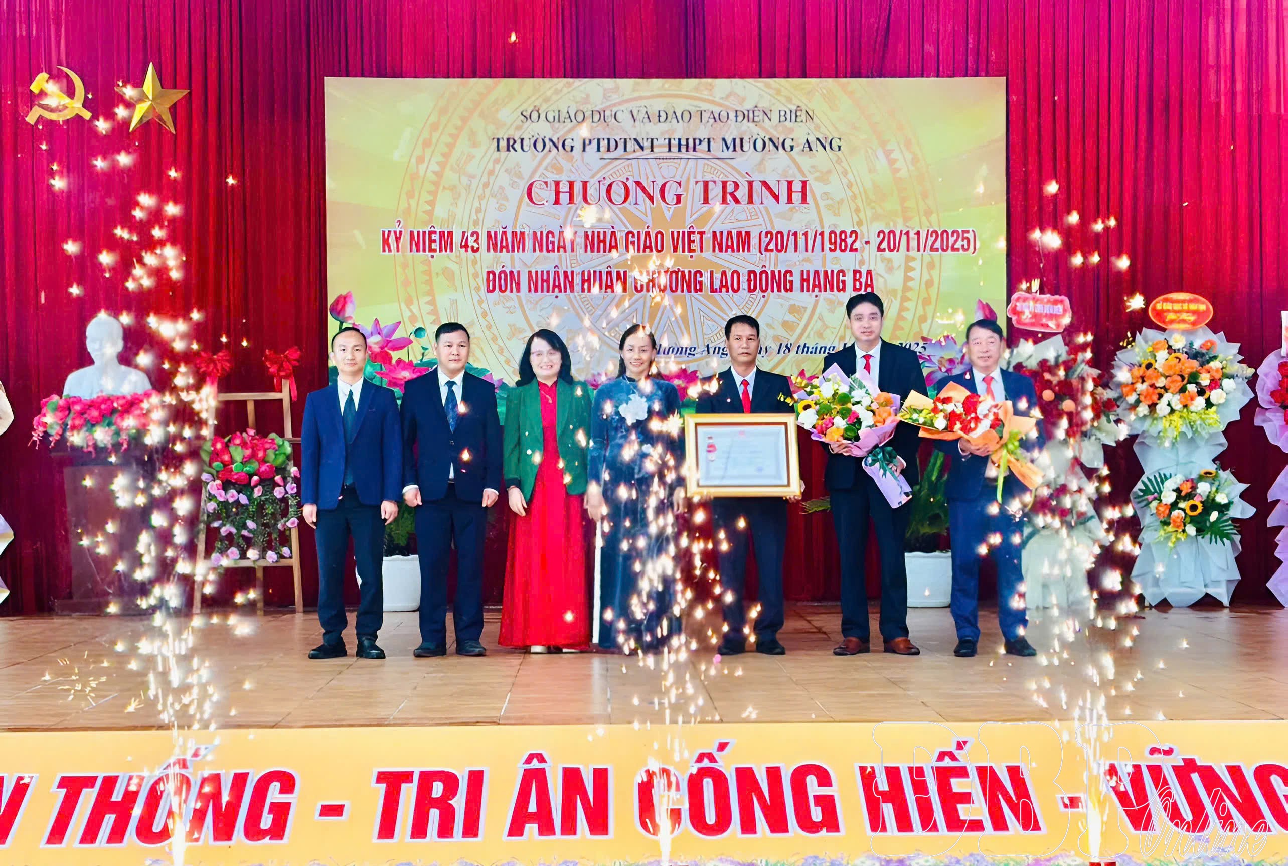 Ban Giám hiệu Trường PTDTNT THPT Mường Ảng đón nhận Huân chương Lao động hạng Ba của Chủ tịch nước Cộng hòa Xã hội Chủ nghĩa Việt Nam.