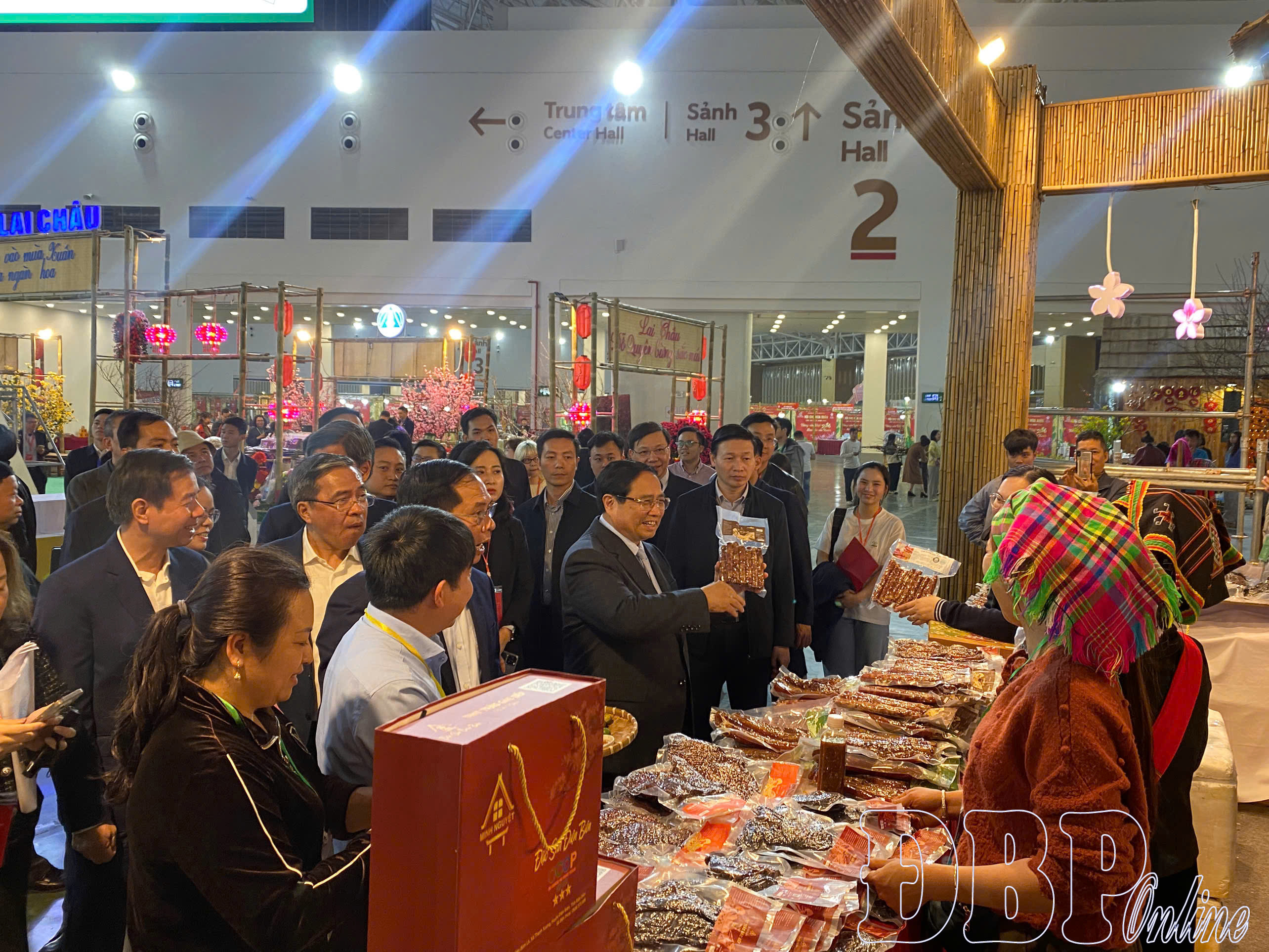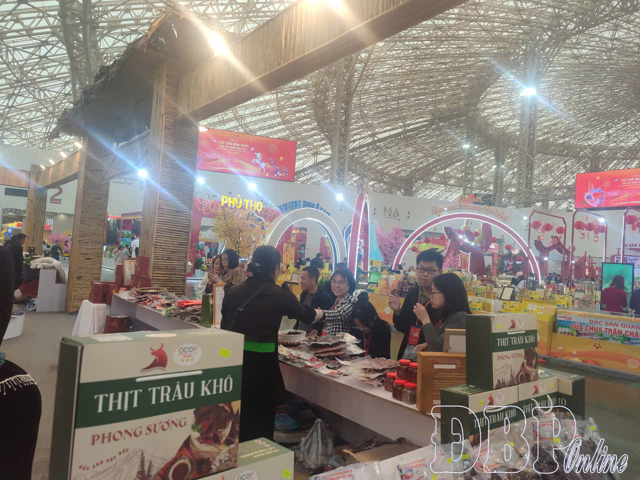 Khu gian hàng của tỉnh Điện Biên được thiết kế bán mở, không gian liên hoàn chia thành các phân khu trưng bày sản phẩm, kết hợp vách trang trí hai bên; thu hút sự tương tác kết nối, hợp tác, giao thương giữa doanh nghiệp tỉnh với các tổ chức xúc tiến thương mại, hiệp hội du lịch, doanh nghiệp trong và ngoài nước. Điện Biên lựa chọn các đơn vị, doanh nghiệp có mặt hàng tiêu biểu là sản phẩm tiểu thủ công nghiệp, sản phẩm nghề truyền thống; sản phẩm nông sản, sản phẩm OCOP đặc trưng; đặc sản, món ngon ẩm thực Điện Biên phục vụ nhu cầu tham quan, trải nghiệm của du khách tại gian hàng. Nhiều sản phẩm của tỉnh Điện Biên thu hút đông đảo khách tham quan, mua sắm như: Gạo séng cù Tâm Thiện (HTX Tâm Thiện); cà phê pha phin Arabica Mường Ảng (Công ty TNHH Hải An); mắc ca của hộ kinh doanh Việt Hà và khăn, váy thổ cẩm của HTX dệt thổ cẩm Pa Thơm…