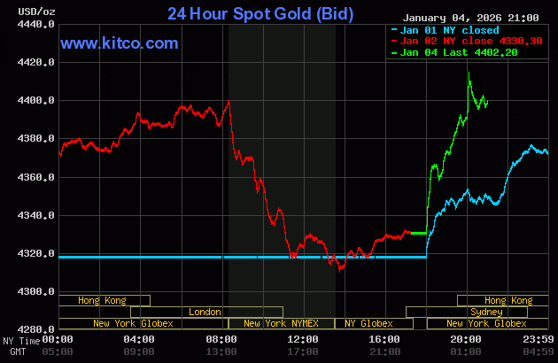Tính đến 9 giờ ngày 5/1 (giờ Việt Nam), giá vàng thế giới tăng vọt 71,9 USD lên mức 4.402,2 USD/ounce.