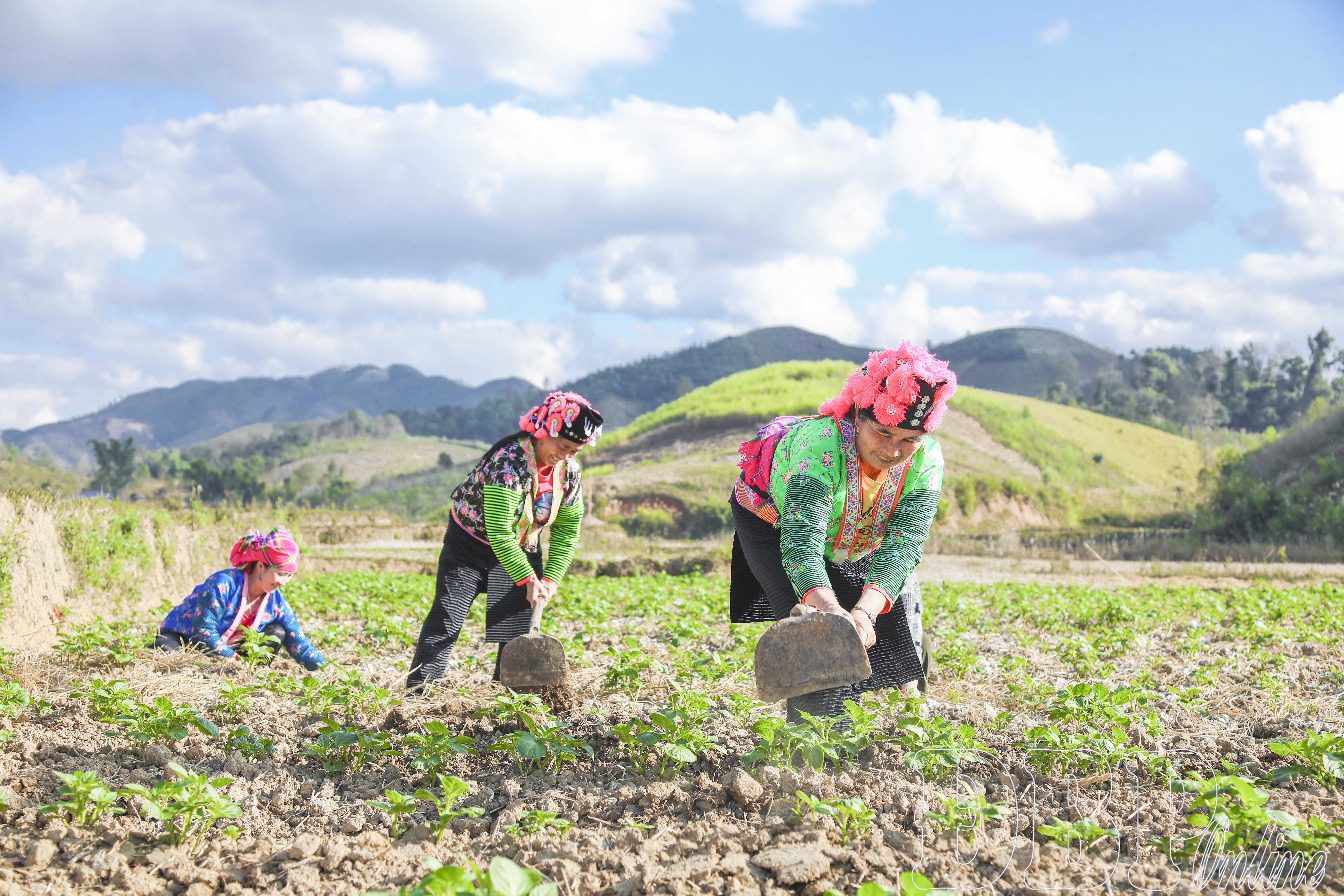 Đến thời điểm hiện tại, tổng diện tích gieo trồng khoai tây thử nghiệm của hai bản đạt 2,2ha. Việc chăm sóc, kiểm tra sâu bệnh, lịch trình bón thúc… được cán bộ xã và người dân cùng thực hiện.
