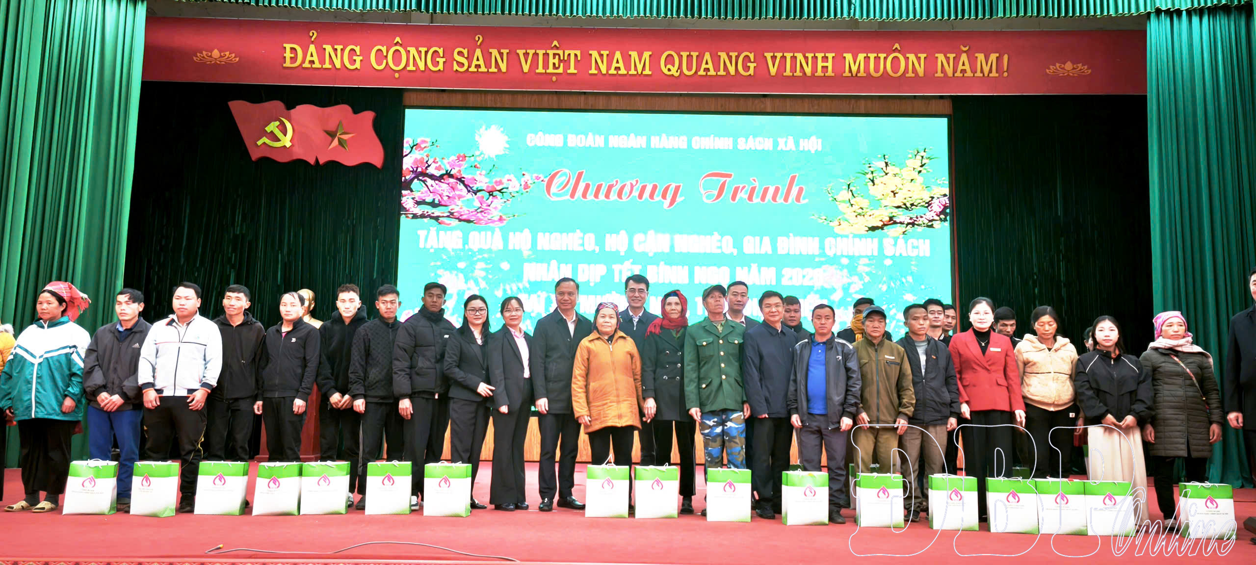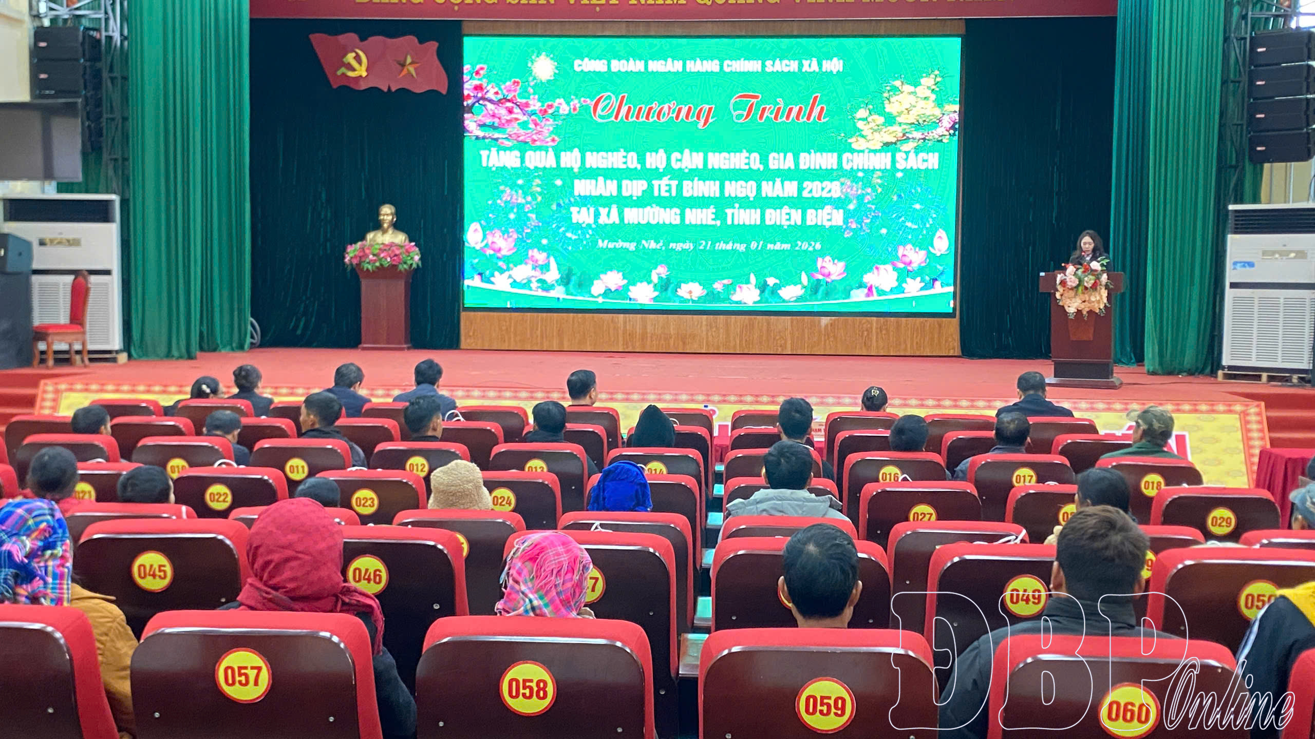 ĐBP - Ngày 21/1, Đoàn công tác Công đoàn Ngân hàng Chính sách xã hội (CSXH) phối hợp với UBND xã Mường Nhé tổ chức chương trình trao tặng quà tết cho các hộ nghèo, hộ cận nghèo và gia đình chính sách trên địa bàn xã.