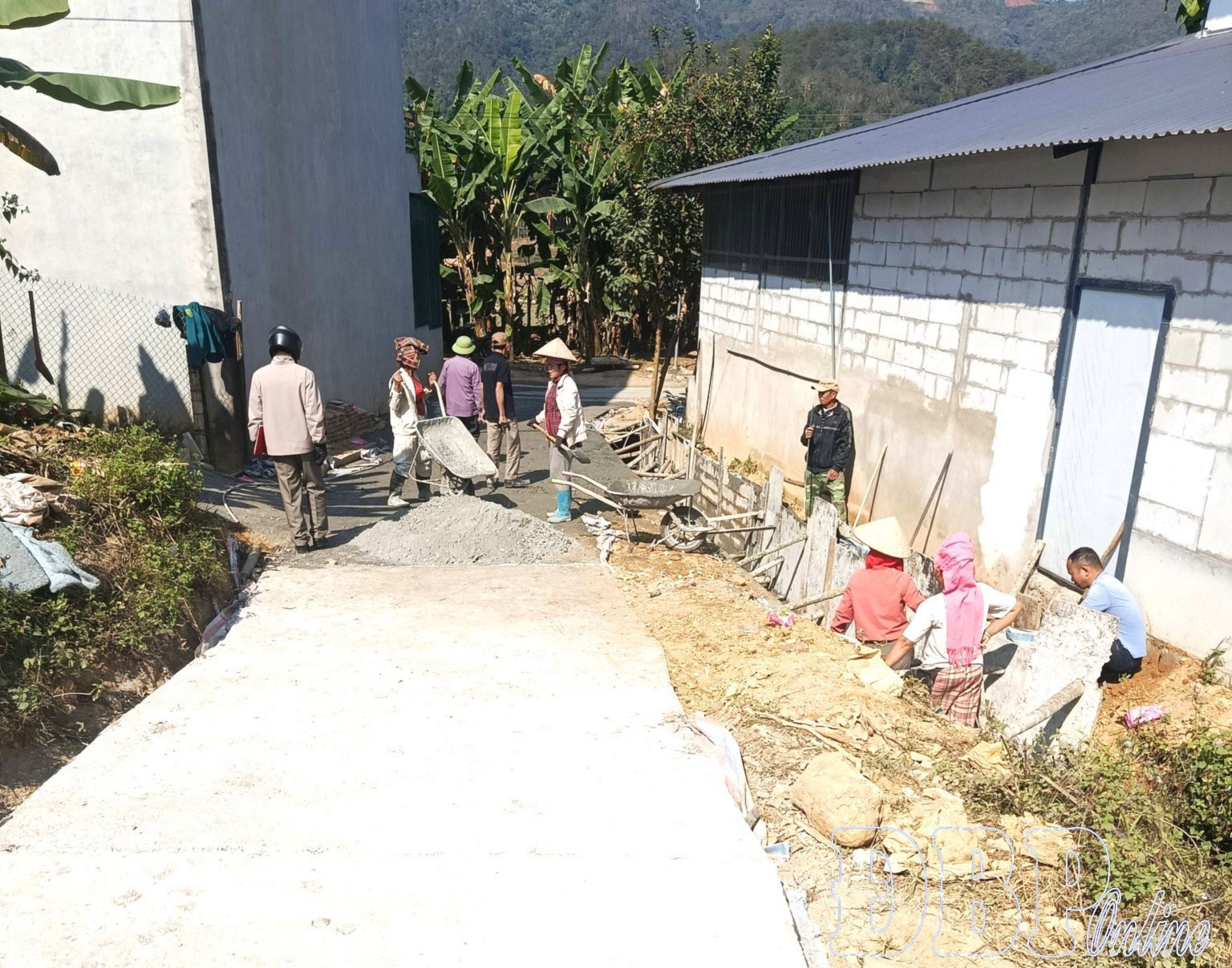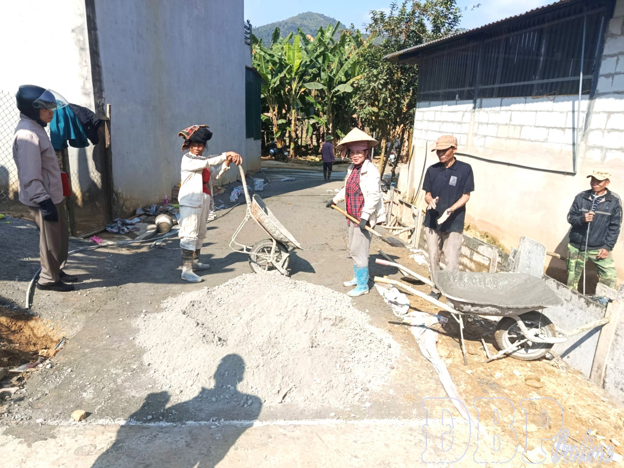 Dưới cái nắng hanh những ngày đầu năm, tuyến đường bê tông ở bản Đắng (xã Nà Tấu) hiện lên kiên cố, sạch sẽ, nối liền khu nội bản với khu dân cư bản Ten. Trên công trường nhỏ giữa bản, bà con nhân dân tay cuốc, tay xẻng, người trộn bê tông, người vận chuyển vật liệu tạo nên không khí lao động rộn ràng, phấn khởi. Công việc vất vả nhưng ai nấy đều nhiệt tình, chung sức với mong muốn sớm hoàn thành con đường mơ ước bao năm nay.