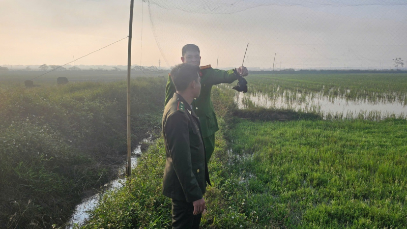 Tiếp tục kiểm tra tại địa bàn trên, tại khu vực cánh đồng Ao Sào và Khu Lũng, thôn Trung Hoàng, xã Phú Nghĩa, TP Hà Nội, tổ công tác phối hợp Công an xã Phú Nghĩa phát hiện có đối tượng sử dụng gần 100m lưới để thực hiện hành vi bẫy, bắt chim hoang dã, thu giữ tại chỗ 50 cá thể chim hoang dã, thuộc loài động vật rừng thông thường gồm vạc, diệc, cò trắng và chim cuốc.