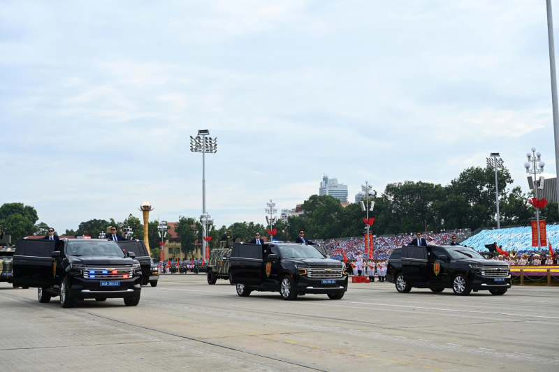 Phía sau những người trực tiếp có mặt tại Quảng trường còn có những đơn vị thầm lặng khác. Trung đoàn 600 và Trung đoàn 375 chịu trách nhiệm kiểm soát an ninh các khu vực lân cận, bảo đảm "trong sạch địa bàn" trước khi sự kiện diễn ra. Đặc biệt, Trung đoàn 375 còn gánh nhiệm vụ bảo vệ Lễ viếng Chủ tịch Hồ Chí Minh và tưởng niệm các Anh hùng liệt sĩ - nghi lễ cấp Nhà nước đầy trang nghiêm. Mỗi đơn vị là một mắt xích, cùng tạo thành hệ thống phòng thủ toàn diện. Khi trò chuyện với họ, chúng tôi nghe được những lời chia sẻ chạm đến trái tim. Trung tá Bùi Thị Hải Liên, Trưởng ban Phụ nữ BTL Cảnh vệ xúc động nói: "Được trực tiếp tham gia bảo vệ Đại lễ là vinh dự lớn nhất trong đời binh nghiệp. Trong thời khắc thiêng liêng ấy, chúng tôi chỉ nghĩ đến trách nhiệm và danh dự". Giọng chị nghẹn lại, nhưng ánh mắt sáng lên niềm tự hào. Tôi nhìn thấy ở chị và đồng đội không chỉ là sự nỗ lực, mà còn là tình yêu nghề, tình yêu Tổ quốc, gửi gắm trong từng vòng bánh xe, từng bước chân diễu binh qua quảng trường lịch sử. Khoảnh khắc ấn tượng nhất với chúng tôi là khi đội hình xe nghiệp vụ của Bộ Tư lệnh Cảnh vệ diễu hành oai vệ trên phố. Không chỉ là màn phô diễn sức mạnh kỹ thuật, đó còn là biểu tượng của sự chuyên nghiệp, bản lĩnh. Những chiếc xe hiện đại, với tính năng vượt trội, lăn bánh trong tiếng reo hò của nhân dân, để lại dấu ấn mạnh trong mắt bạn bè quốc tế. Đằng sau đó là biết bao ngày đêm tập luyện nghiêm túc, mồ hôi thấm trên từng vô lăng, từng động tác, để giây phút đi qua Quảng trường trở thành hình ảnh trọn vẹn.