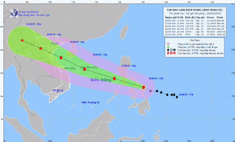 Dự báo, sáng nay đến sáng 27/9, khu vực Đông Bắc Bộ và Nam Phú Thọ tiếp tục có mưa vừa, mưa to và dông, cục bộ có nơi mưa rất to, với lượng mưa phổ biến 30-70mm, cục bộ có nơi trên 150mm. Cảnh báo nguy cơ mưa có cường suất lớn (>100mm/3h).