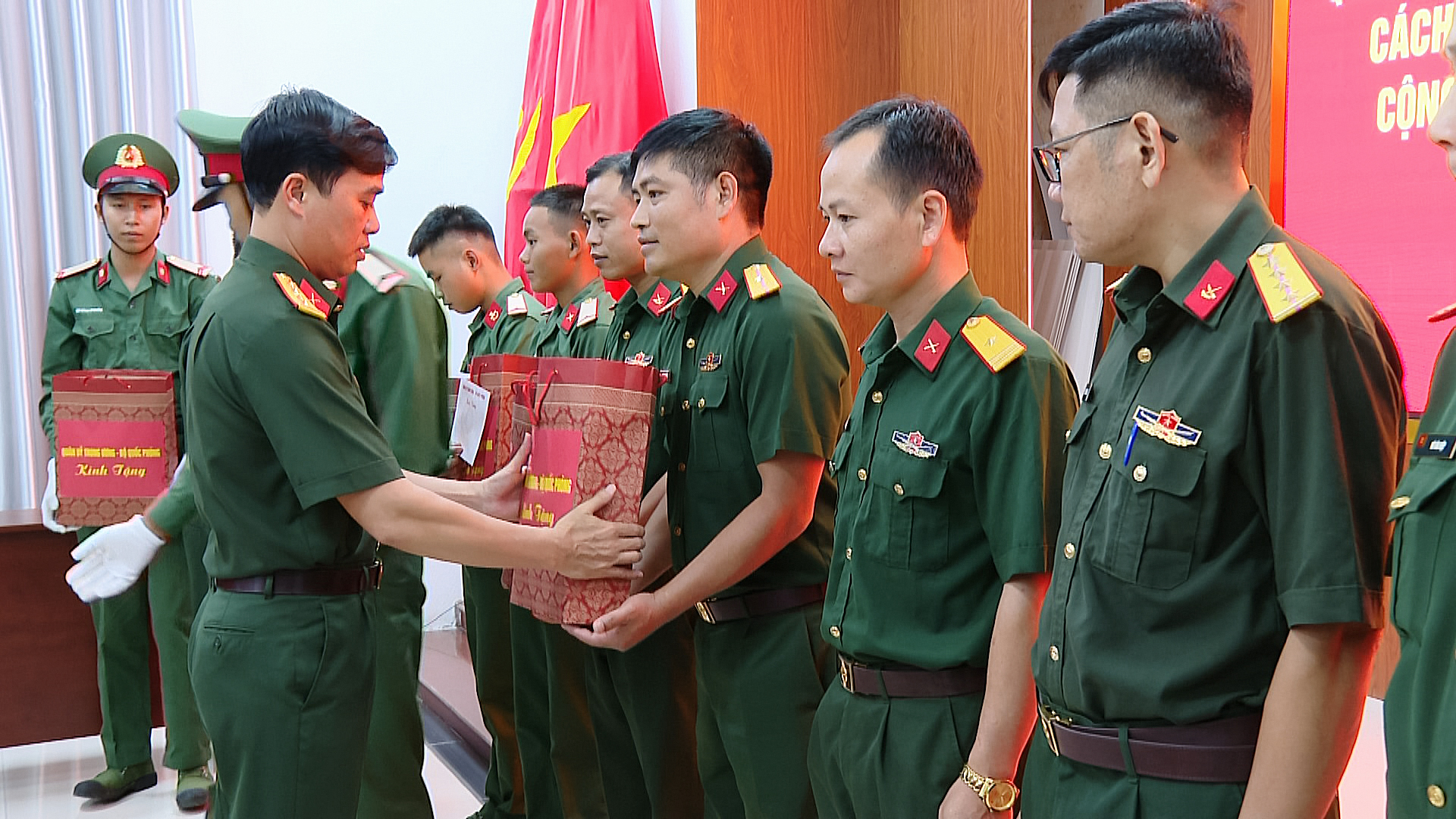 Tại buổi lễ, thừa uỷ quyền của Quân uỷ Trung ương, Bộ Quốc phòng, Đảng uỷ Bộ Chỉ huy Quân sự (CHQS) tỉnh đã trao 24 suất quà cho quân nhân có hoàn cảnh đặc biệt khó khăn, mỗi suất trị giá 1.800.000 đồng