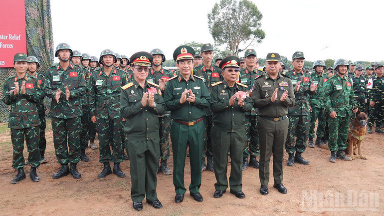 Đại tướng Chansamone Chanyalath, Ủy viên Bộ Chính trị, Phó Thủ tướng Chính phủ Lào dự diễn tập. Đoàn đại biểu cấp cao Bộ Quốc phòng Việt Nam do Đại tướng Phan Văn Giang, Ủy viên Bộ Chính trị, Bộ trưởng Quốc phòng dẫn đầu; Đoàn đại biểu cấp cao Bộ Quốc phòng Lào do Thượng tướng Khamliang Outhakaysone, Ủy viên Trung ương Đảng Nhân dân Cách mạng Lào, Bộ trưởng Quốc phòng Lào dẫn đầu; Đoàn đại biểu cấp cao Bộ Quốc phòng Campuchia do Đại tướng Tea Seiha, Phó Thủ tướng, Bộ trưởng Quốc phòng Campuchia dẫn đầu.