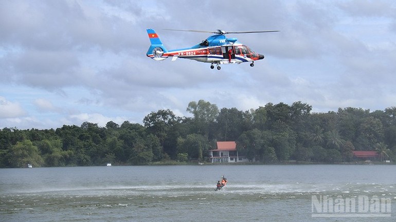 Đối với nội dung tìm kiếm, cứu hộ và giúp đỡ người gặp nạn do lũ lụt, lực lượng quân đội ba nước thực hành tuần tra, tìm kiếm người gặp nạn trong phạm vi khu vực lũ lụt theo các điểm bằng thuyền và máy bay không người lái; cứu nạn và giúp đỡ người gặp nạn còn mắc kẹt trong các ngôi nhà, trên cây và khu vực bị cô lập; cứu nạn và giúp đỡ người gặp nạn bị thương tích do nước cuốn trôi; tổ y tế khẩn cấp sơ cứu người bị nạn trước khi chuyển đến Bệnh viện dã chiến.