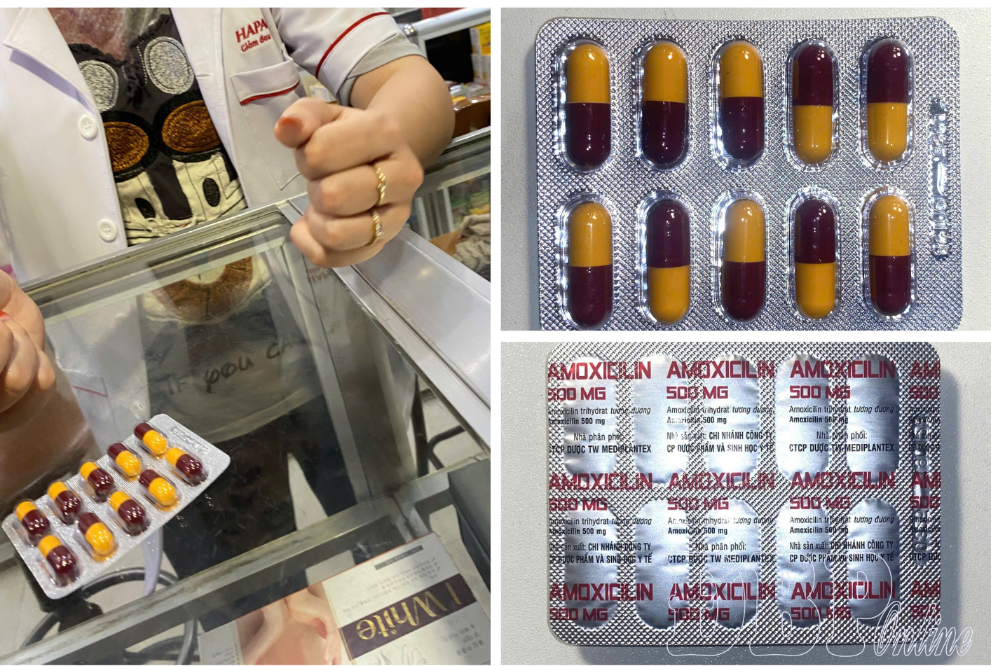 mua thuốc AMOXICILLIN 500mg (dạng viên nang màu nâu - vàng),
