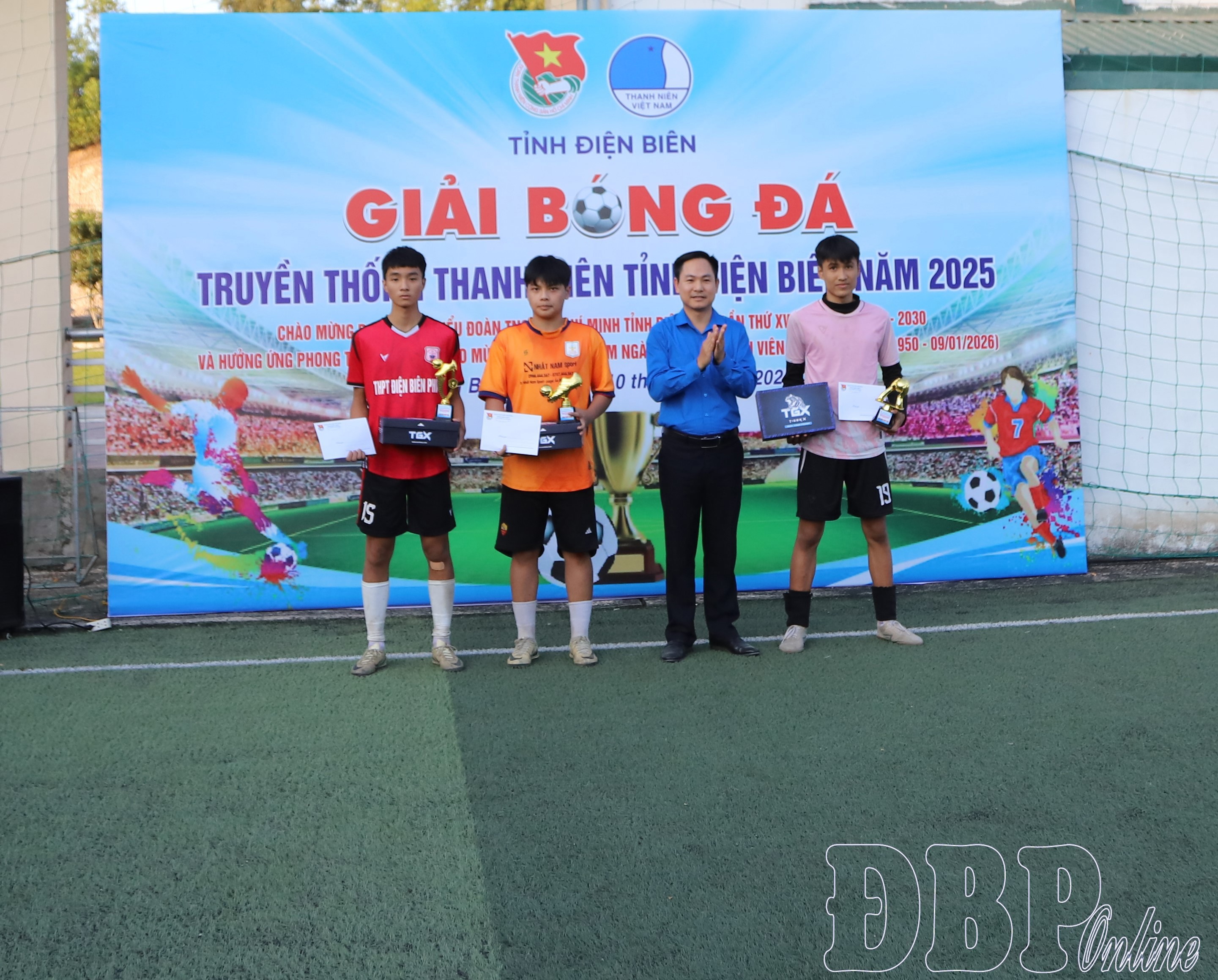 ĐBP - Sau hai ngày tranh tài sôi nổi với nhiều trận đấu kịch tính và những pha bóng đẹp mắt, chiều 7/12, Tỉnh đoàn Điện Biên đã tiến hành bế mạc Giải bóng đá truyền thống Thanh niên tỉnh Điện Biên năm 2025 và trao giải cho các đội.