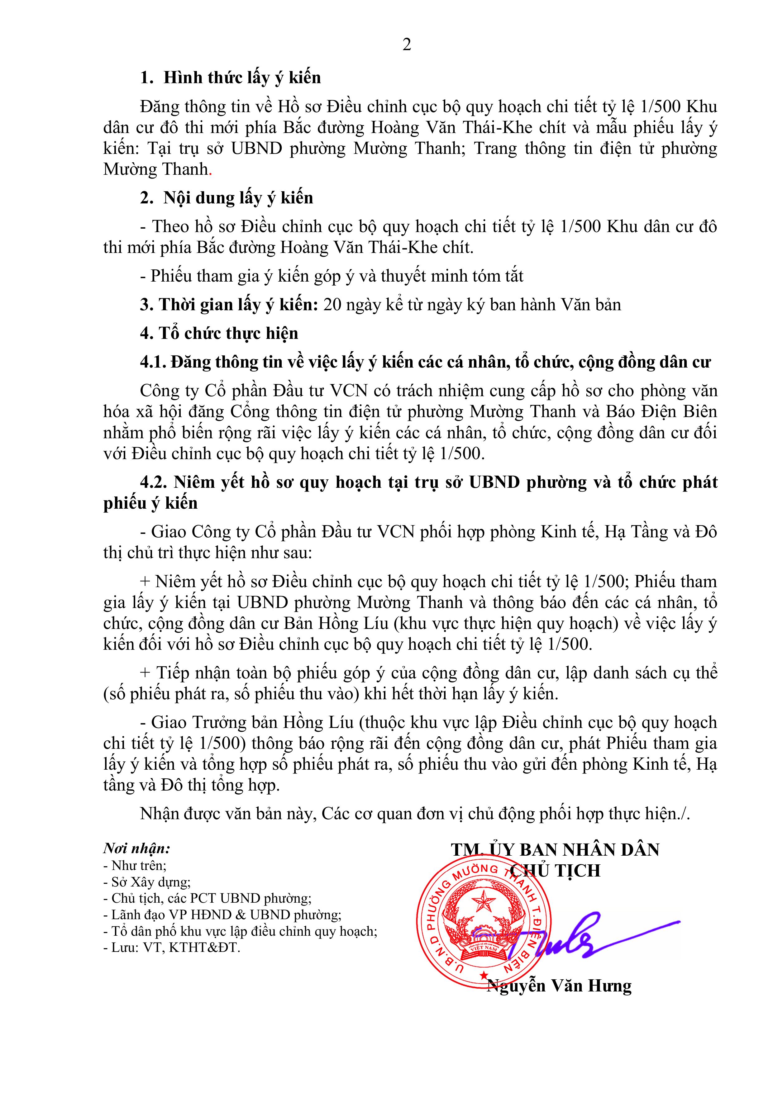 Lấy ý kiến cộng đồng dân cư, tổ chức, cá nhân góp ý đối với đồ án điều chỉnh cục bộ quy hoạch Khu đô thị mới phía Bắc đường Hoàng Văn Thái - Khe Chít