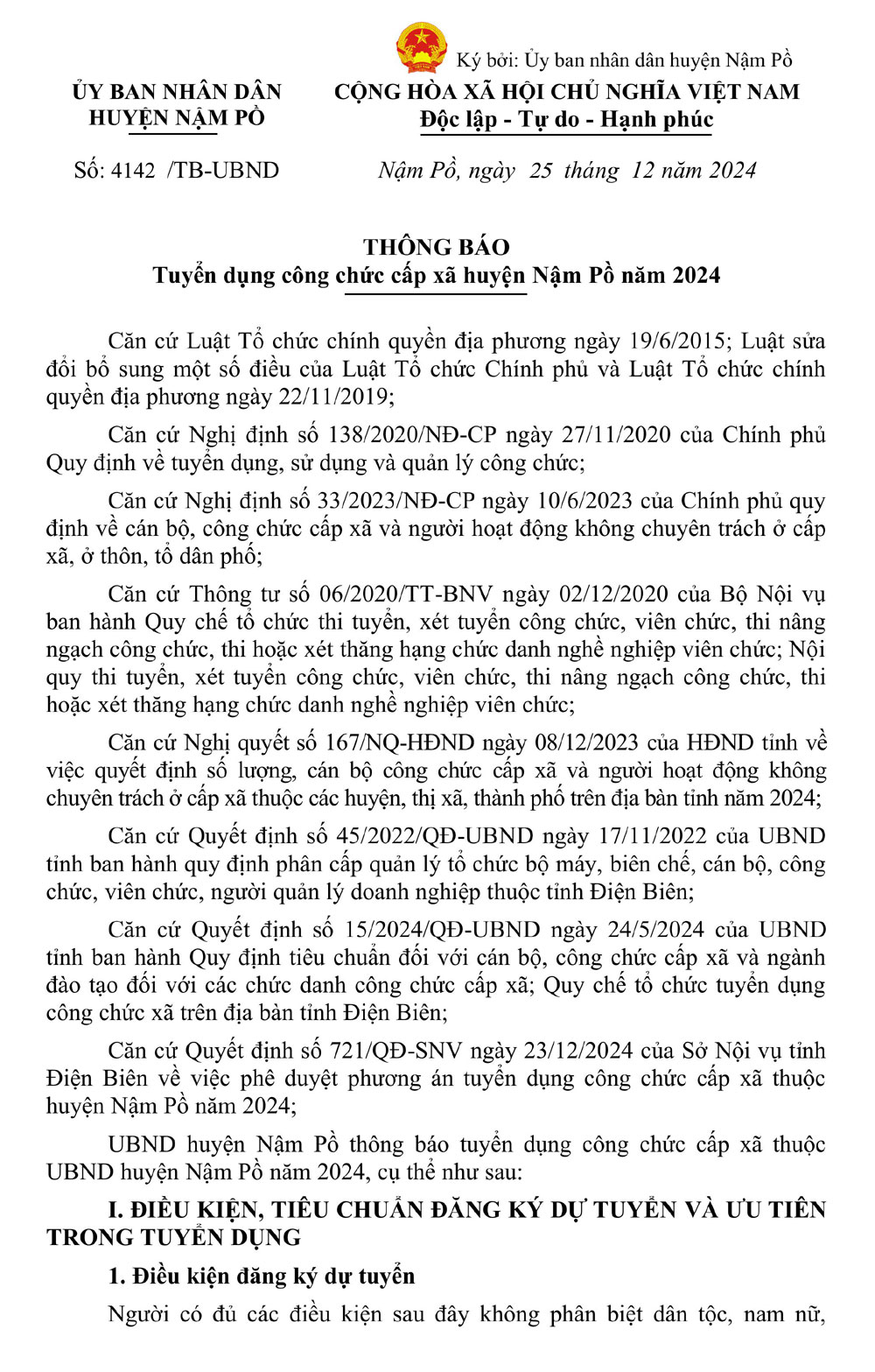 Thông báo tuyển dụng công chức cấp xã huyện Nậm Pồ năm 2024