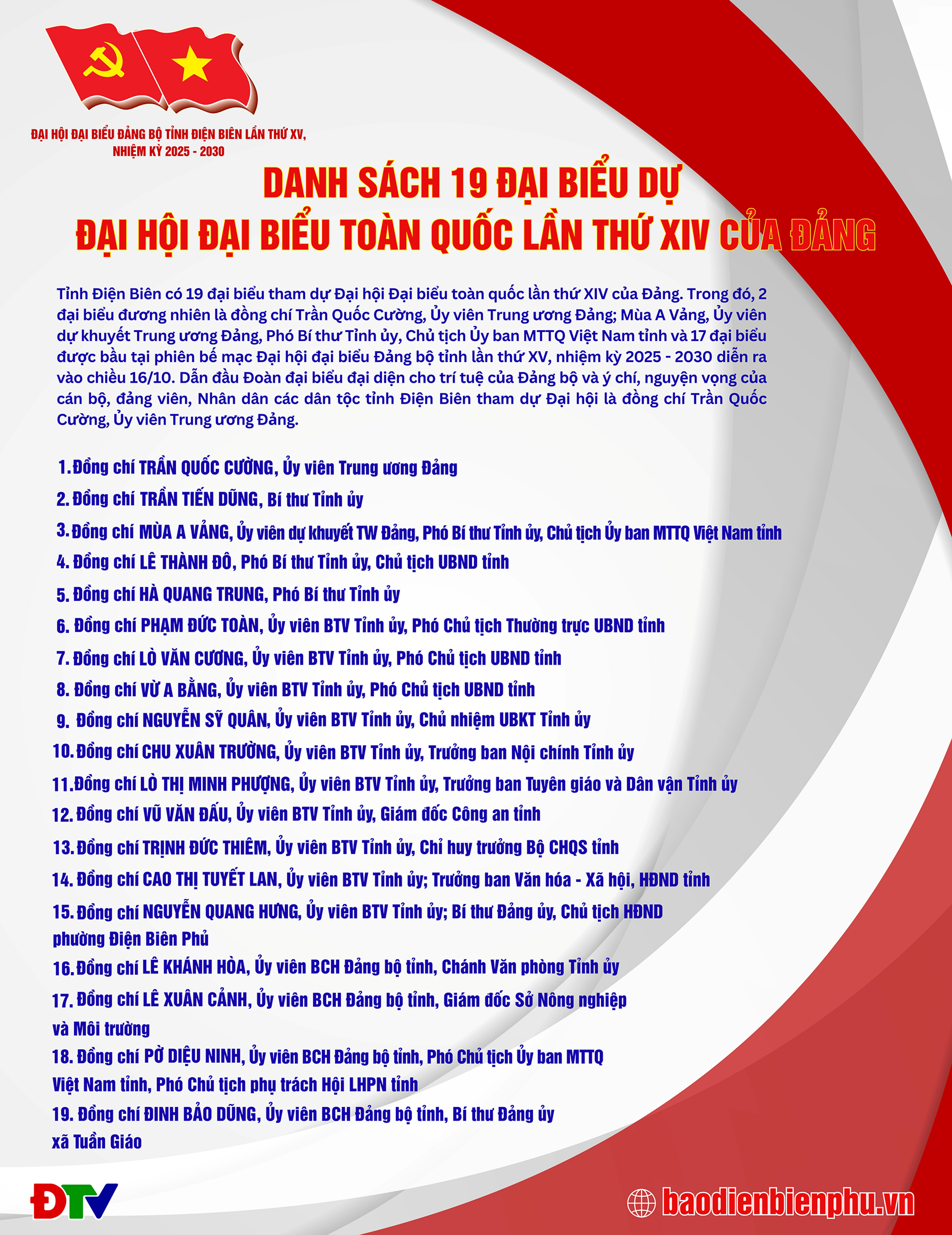 Danh sách đoàn đại biểu Đảng bộ tỉnh dự Đại hội đại biểu toàn quốc lần thứ XIV của Đảng