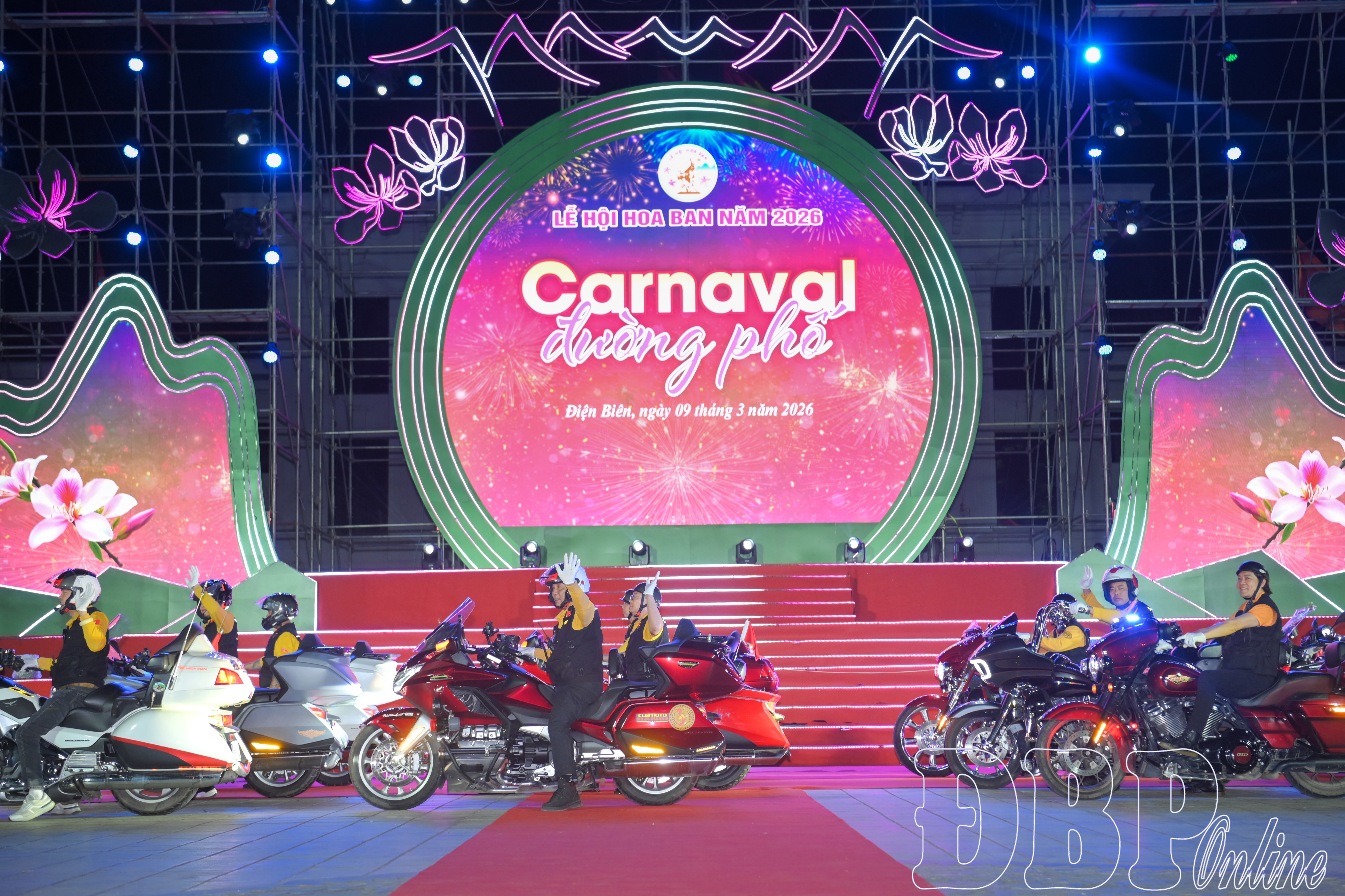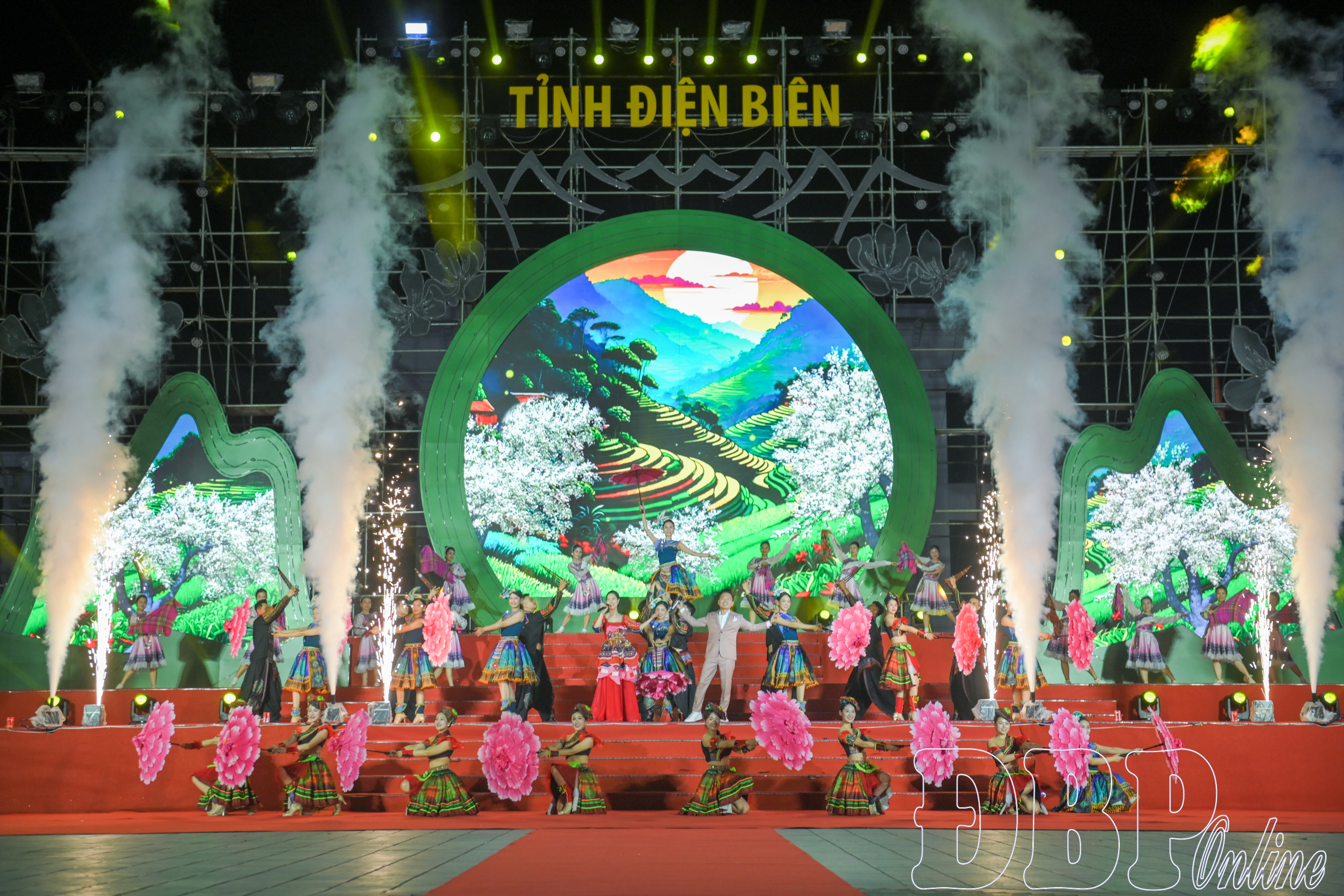 Mở màn chương trình là những tiết mục ca múa nhạc đặc sắc, tôn vinh vẻ đẹp thiên nhiên, văn hóa và con người Điện Biên mang đến cho khán giả những cảm xúc rộng ràng, hào hứng. Tiếp đó là diễn diễu nghệ thuật “Sắc màu hội tụ” – nơi các đoàn nghệ thuật, vũ đoàn, nghệ sĩ xiếc, các câu lạc bộ mô tô, cosplay cùng nhiều nhóm biểu diễn trong nước và quốc tế trình diễn qua sân khấu trong không khí sôi động và náo nhiệt.