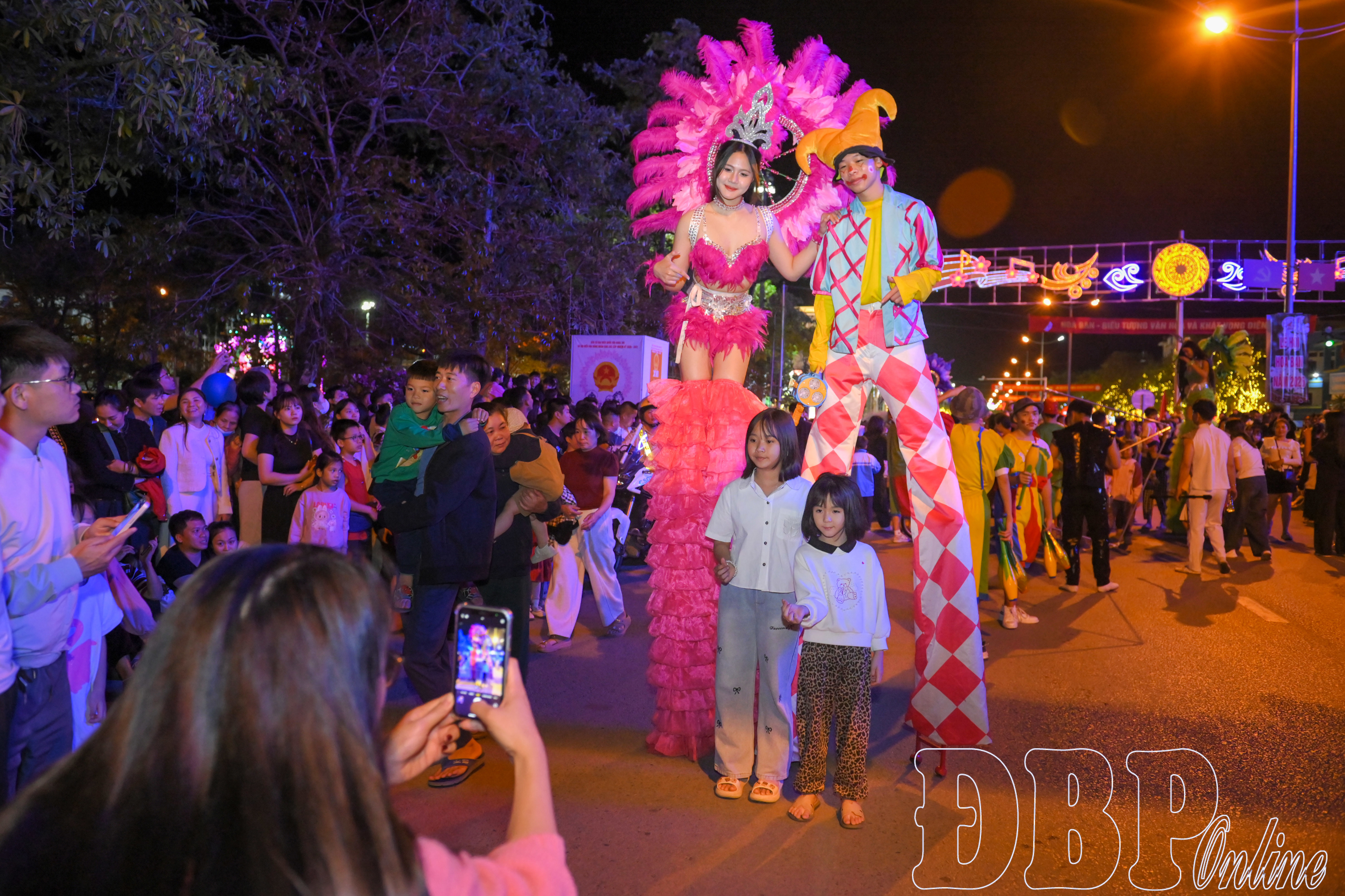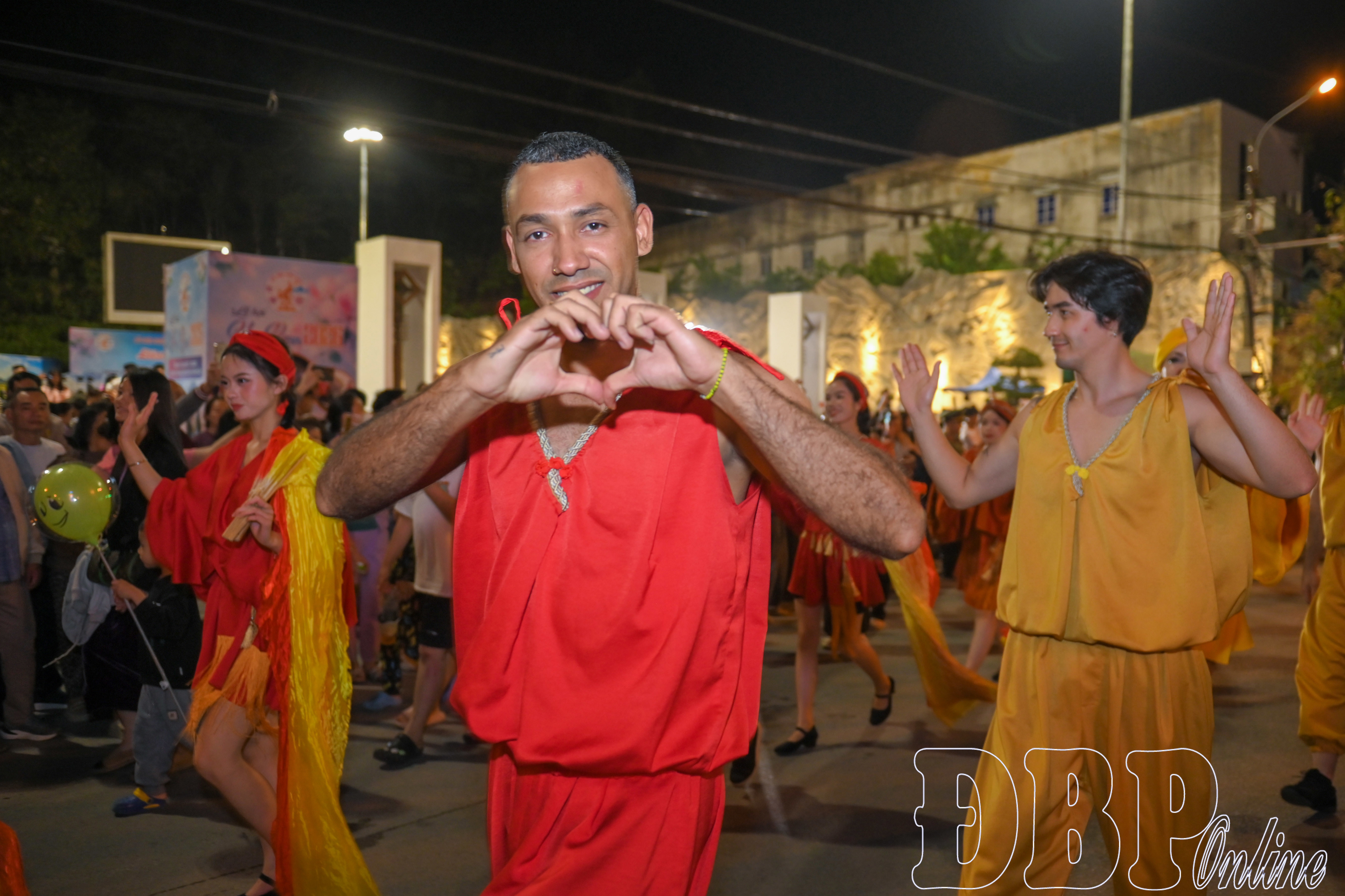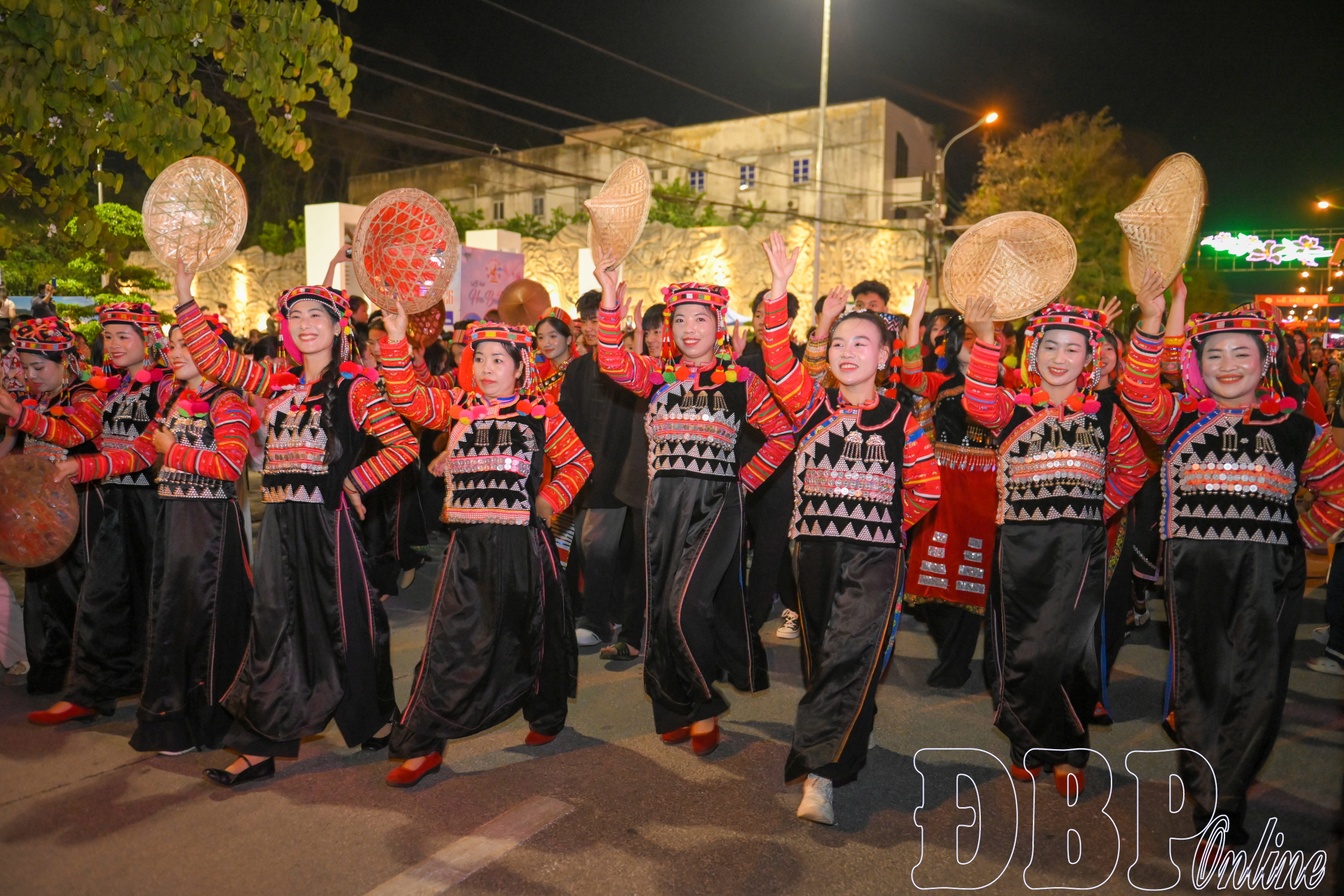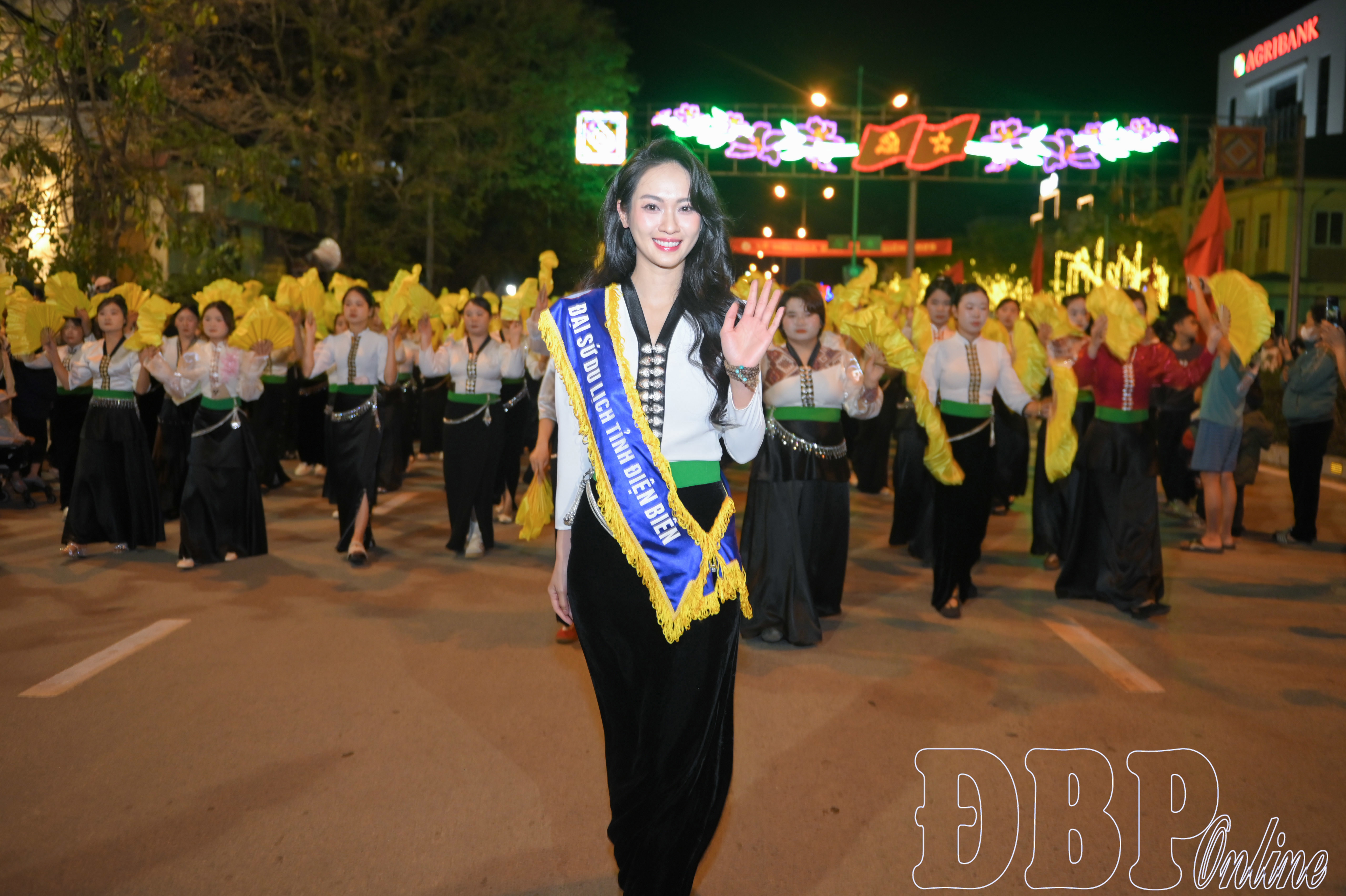 Ngay sau đó, các đoàn nghệ thuật với nhiều sắc màu văn hóa đã lần lượt diễn diễu qua sân khấu và tiến ra các tuyến phố trung tâm. Từ Quảng trường 7/5, các đoàn nghệ thuật di chuyển theo tuyến đường Võ Nguyên Giáp, qua khu vực vòng xuyến Tượng đài Chiến thắng Điện Biên Phủ, cầu Thanh Bình và khu vực khách sạn Mường Thanh Luxury trước khi quay lại Quảng trường 7/5.