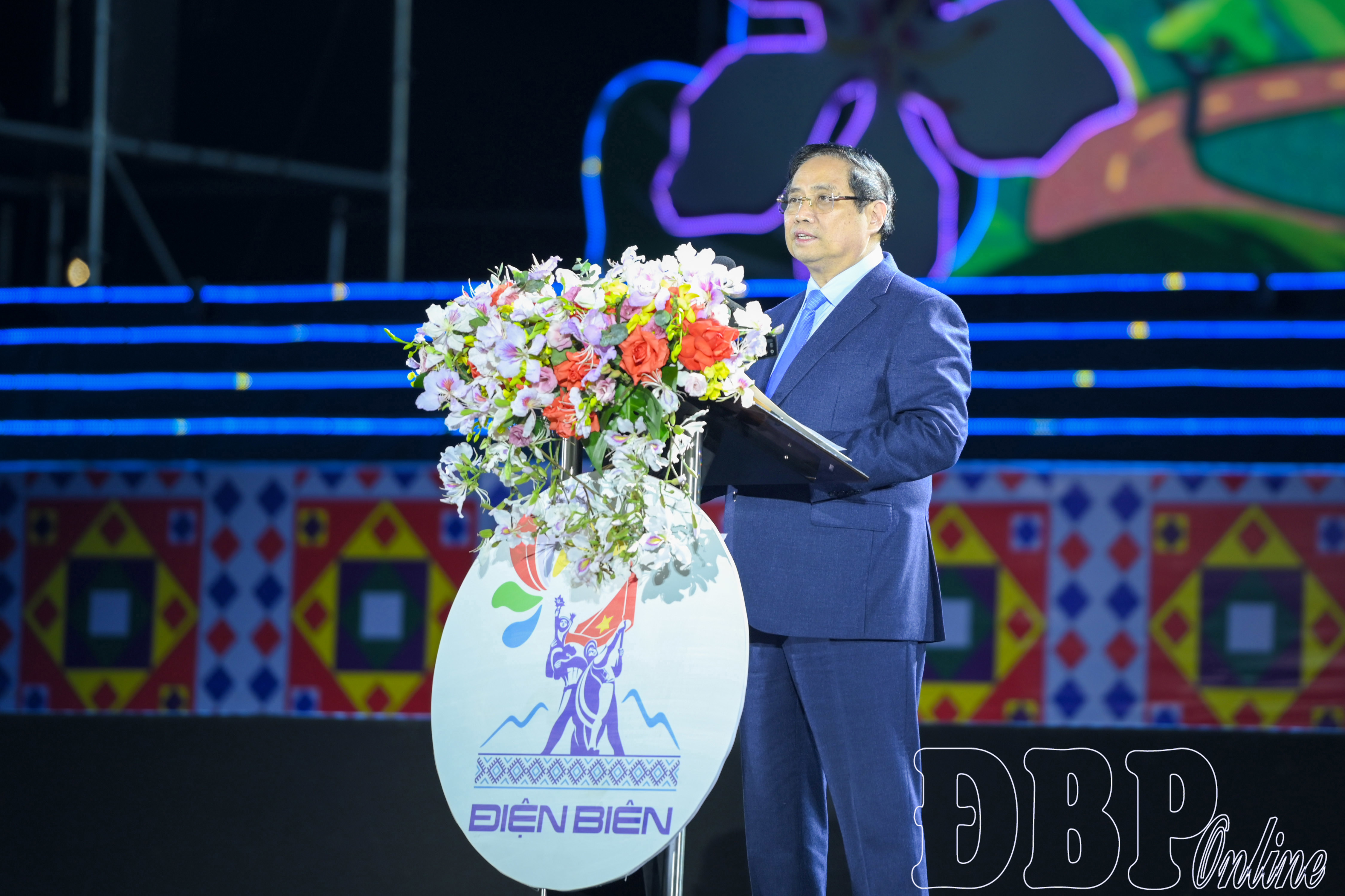 Thủ tướng nhấn mạnh: Việc xác định sự phát triển của Điện Biên phải gắn chặt với sự phát triển chung của vùng Tây Bắc và cả nước, trở thành một trung tâm kết nối kinh tế, văn hóa, xã hội của vùng. Đồng thời phải quyết liệt triển khai hiệu quả Nghị quyết 80 của Bộ Chính trị về phát triển văn hóa Việt Nam, tập trung bảo tồn và phát huy giá trị văn hóa truyền thống của các dân tộc. Điện Biên cần đưa du lịch trở thành ngành kinh tế mũi nhọn dựa trên lợi thế về thiên nhiên và lịch sử hào hùng, đồng thời nâng tầm thương hiệu Lễ hội Hoa Ban thành điểm đến mang tầm quốc gia và vươn mình quốc tế.